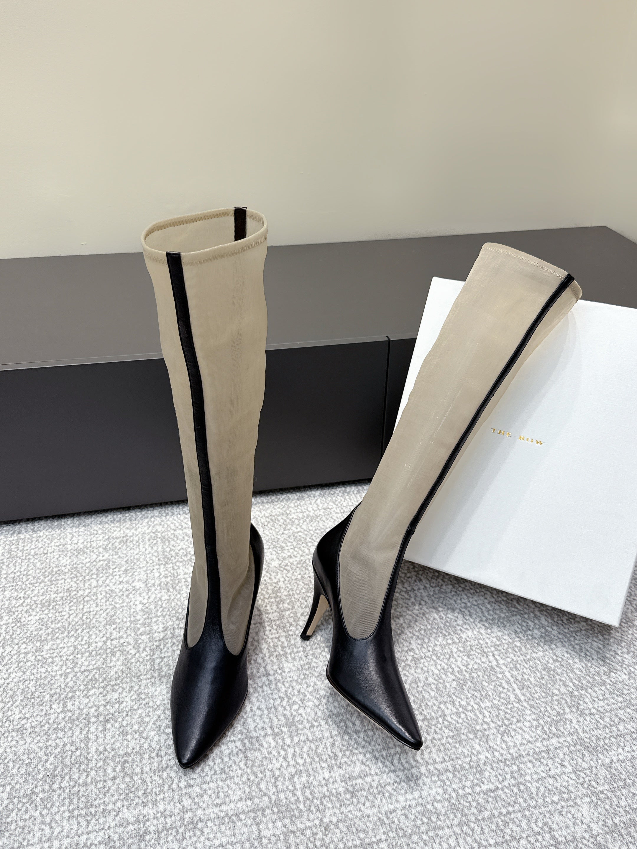 The Row Knee-High Boots 85mm Black Mesh Cowhide 451298