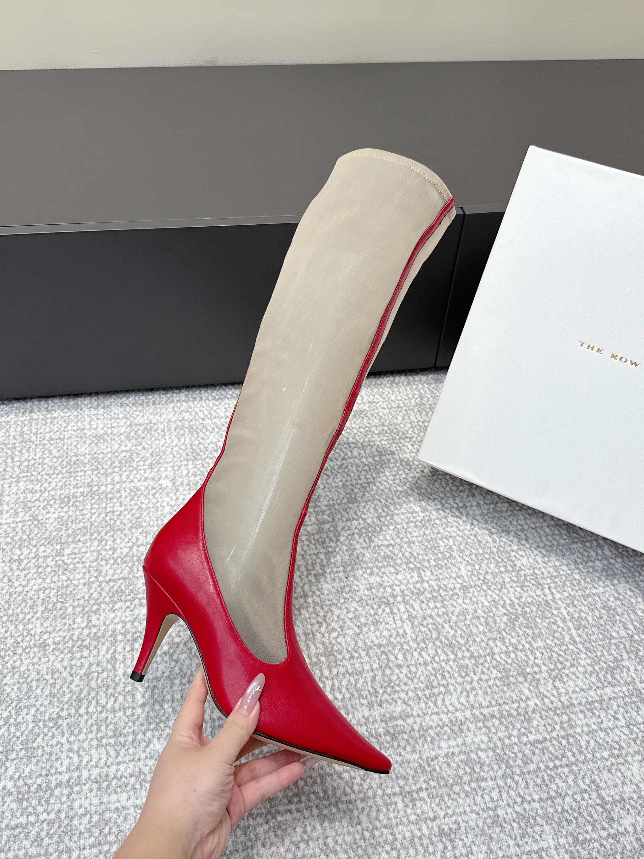 The Row Knee-High Boots 85mm Red Mesh Cowhide 451297