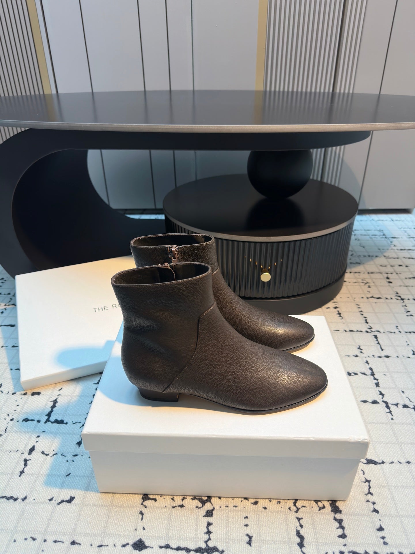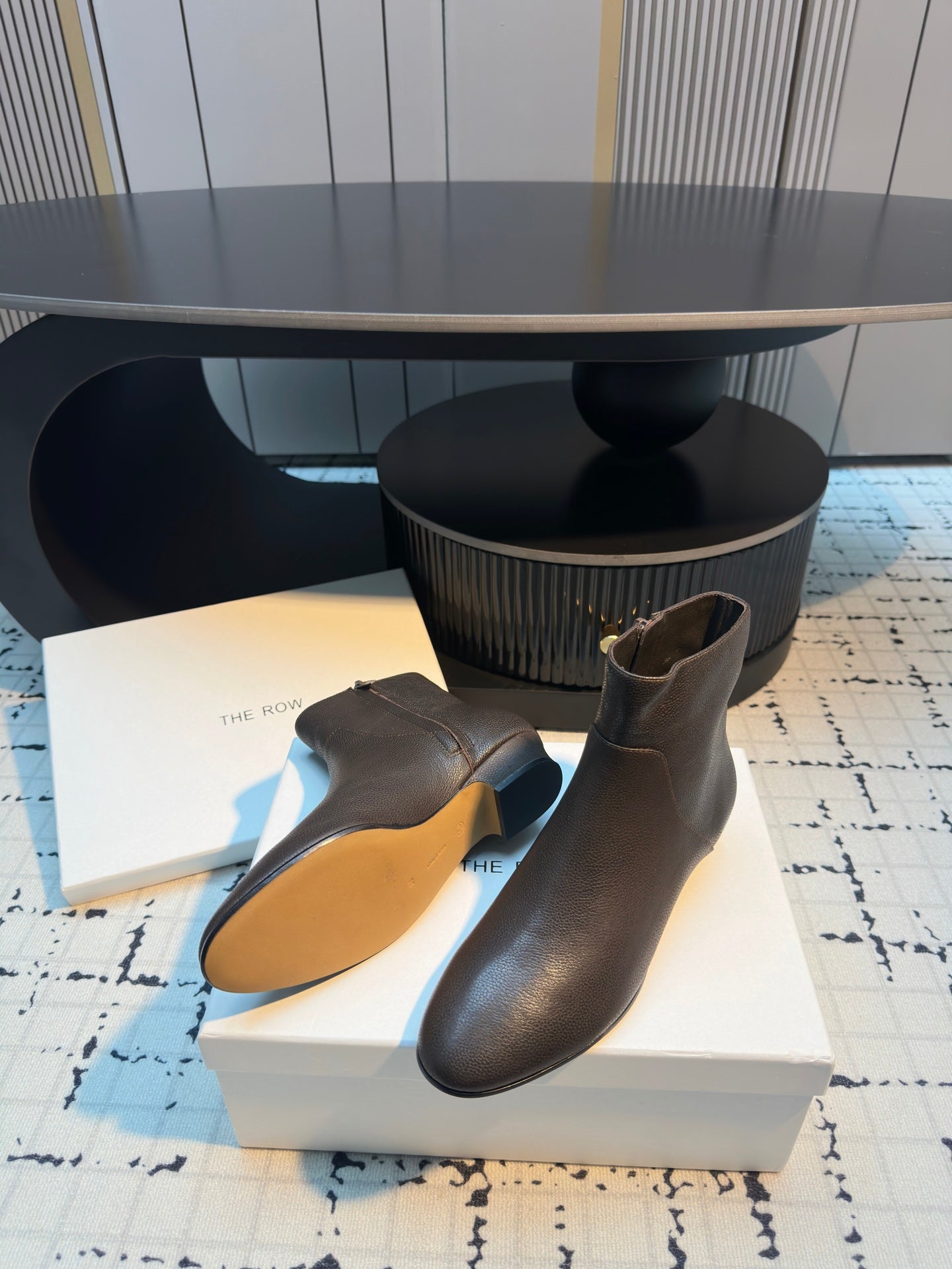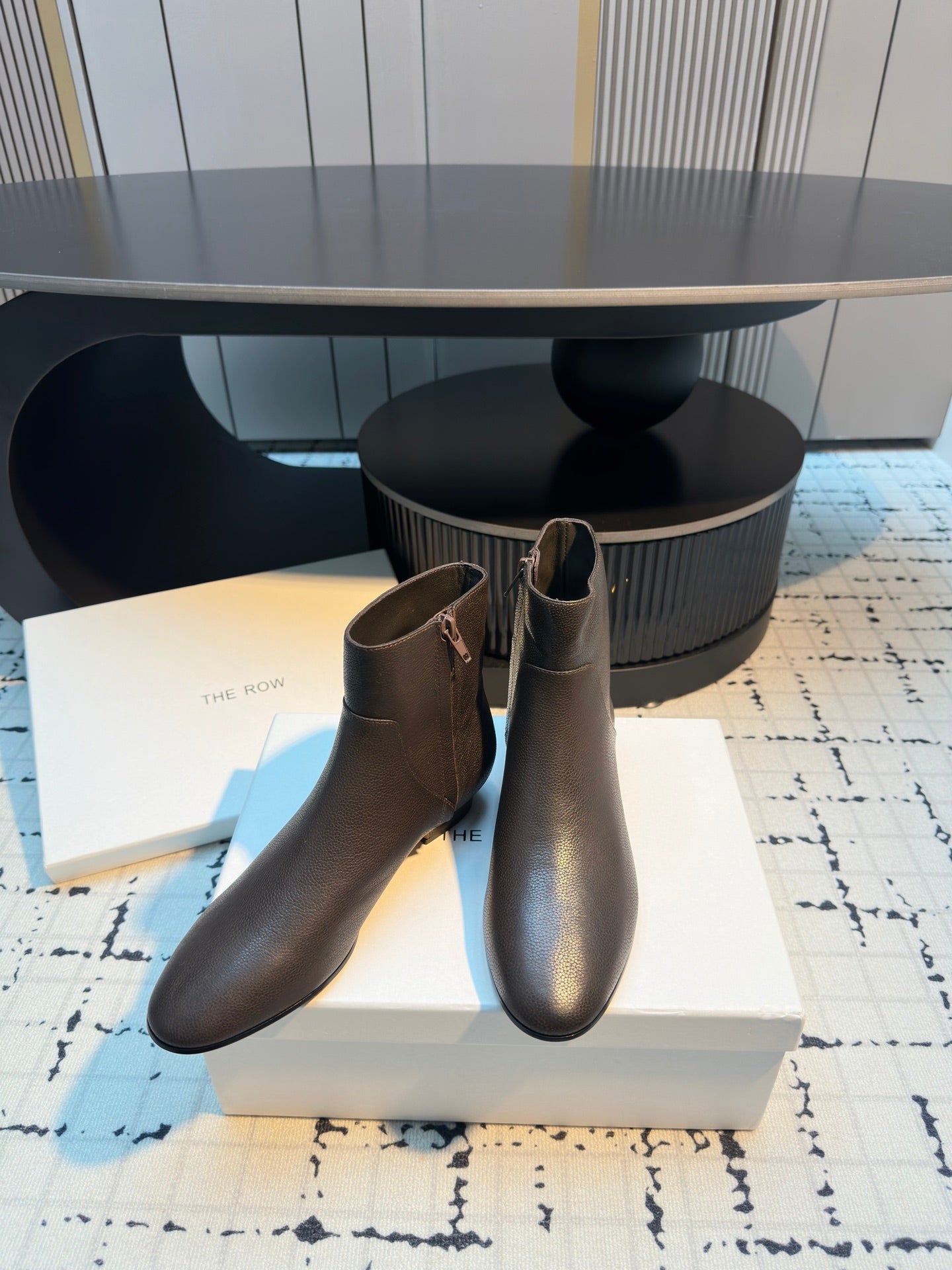 The Row Zipped Ankle Boots 50mm Burnt Earth Calfskin 429314