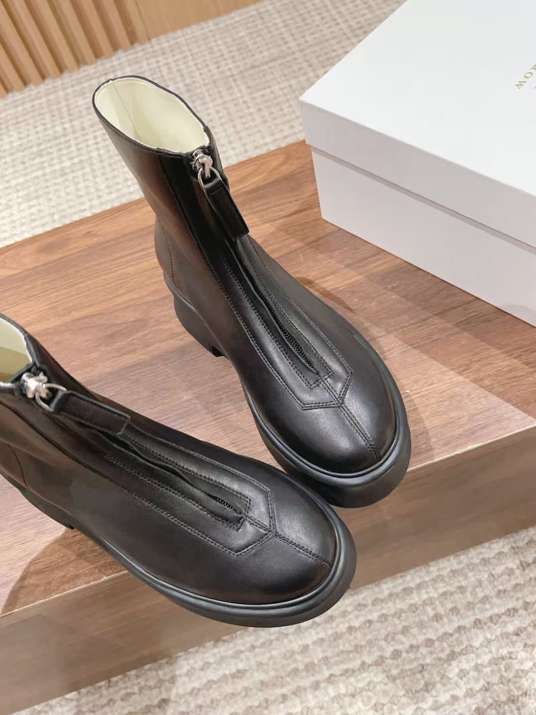 The Row Zipped Flatform Ankle Boots 40mm Black Leather
