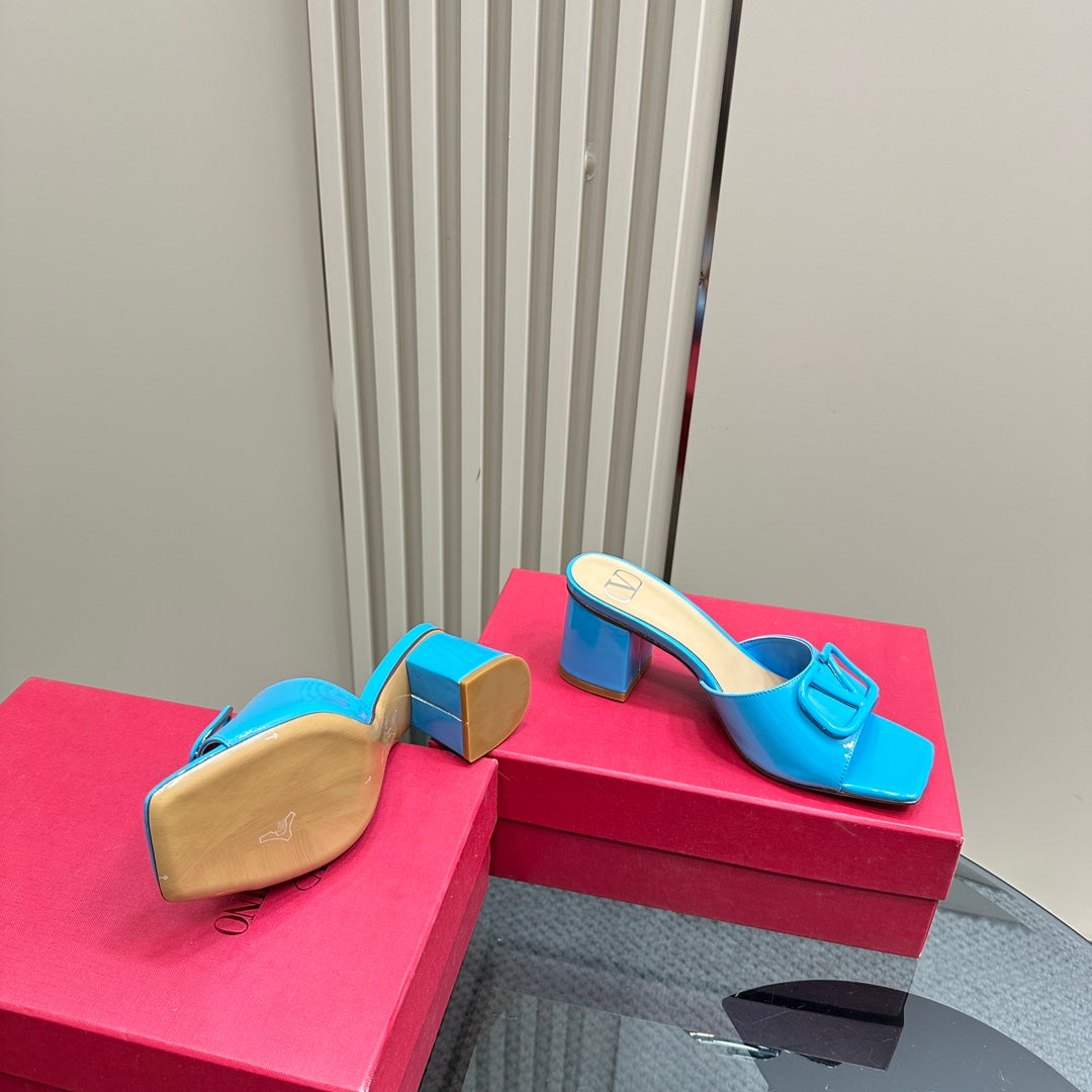 Vogo Signature High Shine Open Toe Sandals In Blue Glossy Lambskin 839817