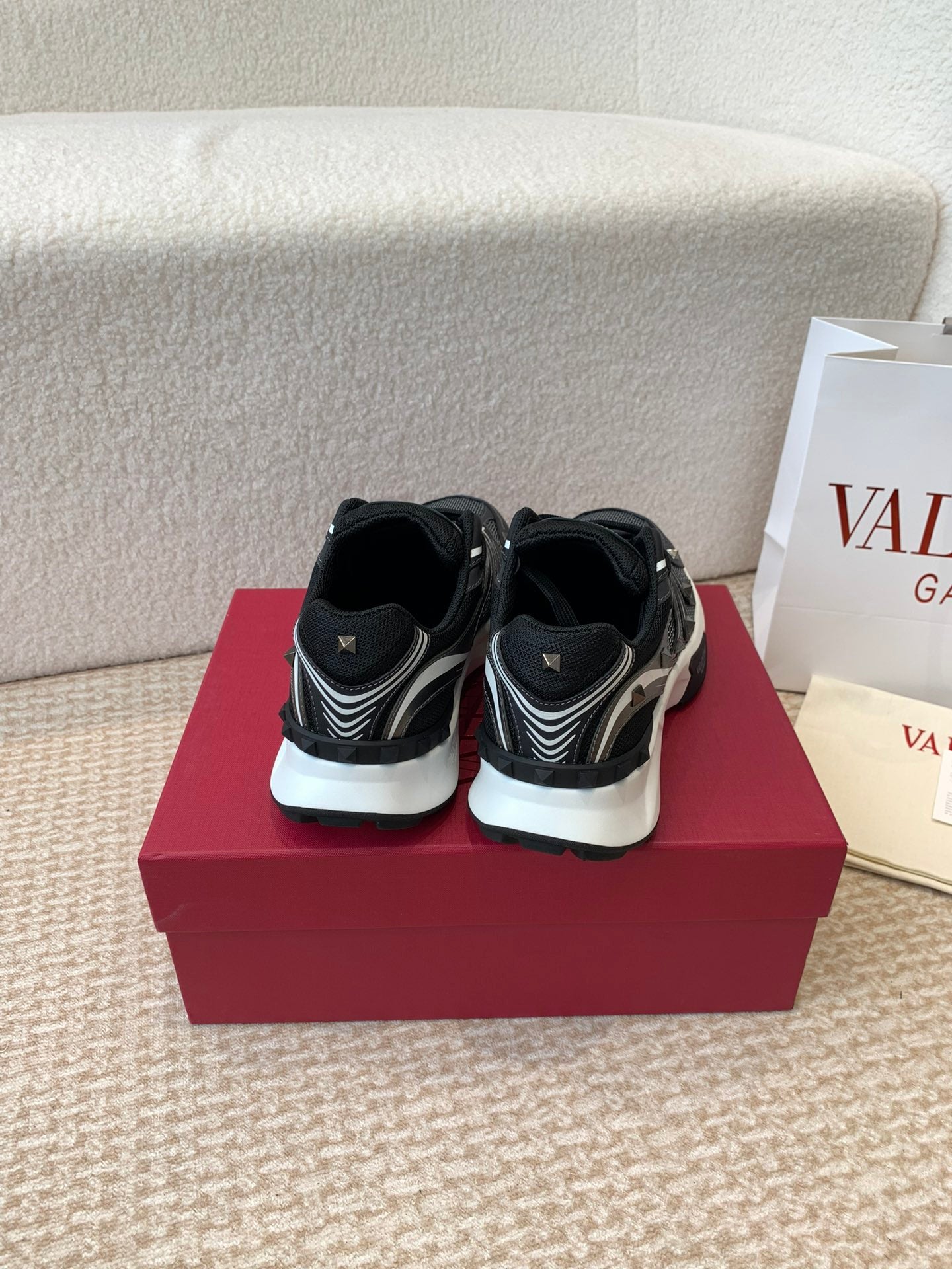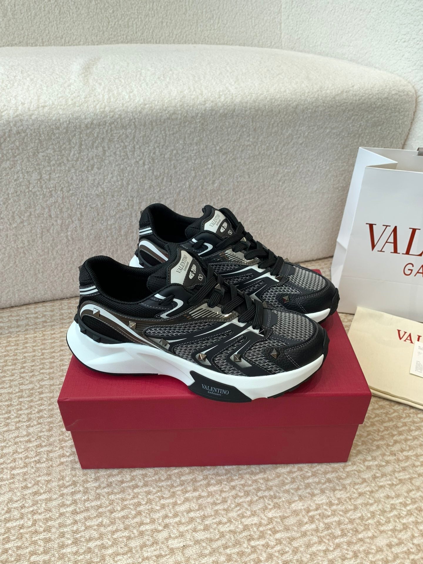 Valentino Sneaker 50mm In Black Mix White Mesh Fabric And Cowhide 814280
