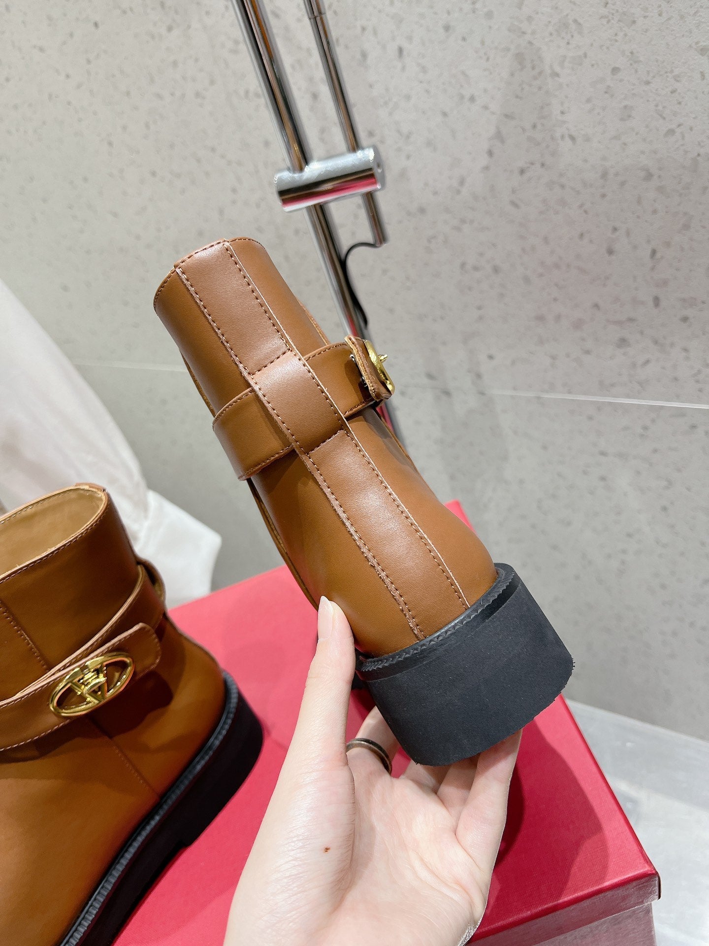VLOGO SIGNATURE COPPER BROWN CALFSKIN ANKLE BOOT 30MM