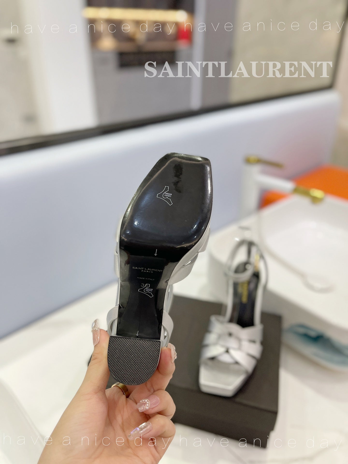 SL TRIBUTE FLATFORM SANDALS SILVER CALFSKIN