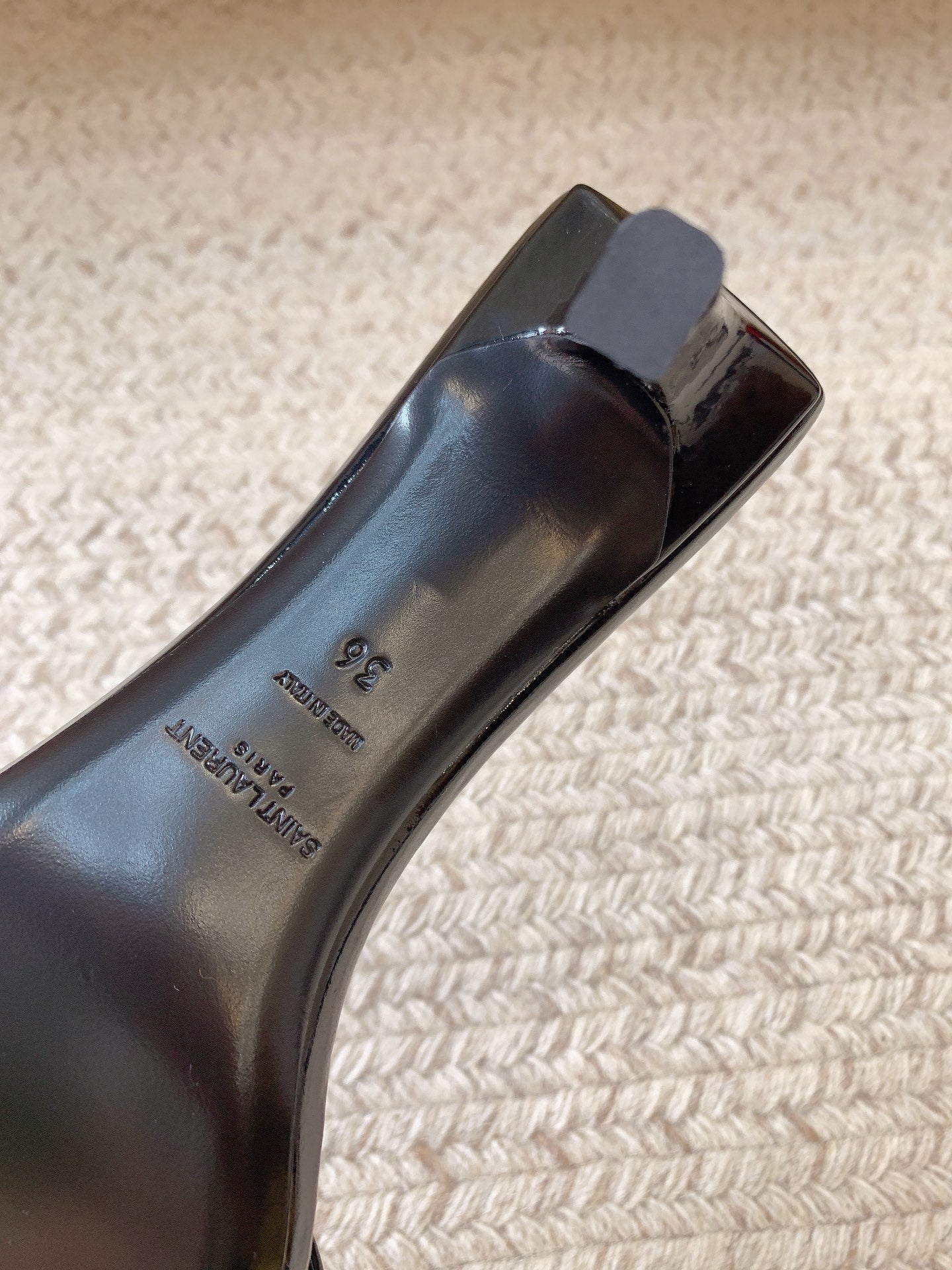 HIGH MULES WITH SQUARE TOE IN BLACK GLOSSY CALFSKIN