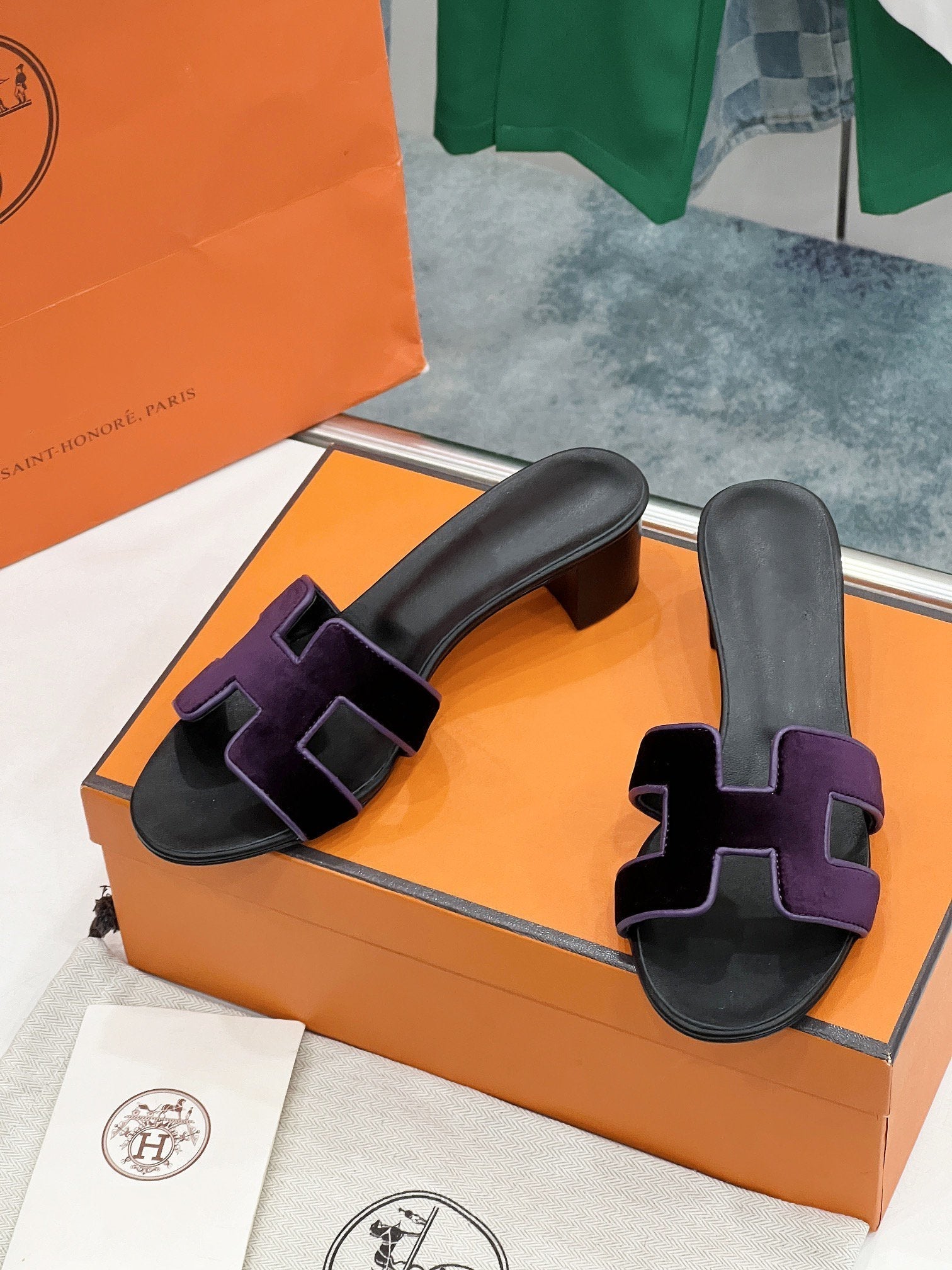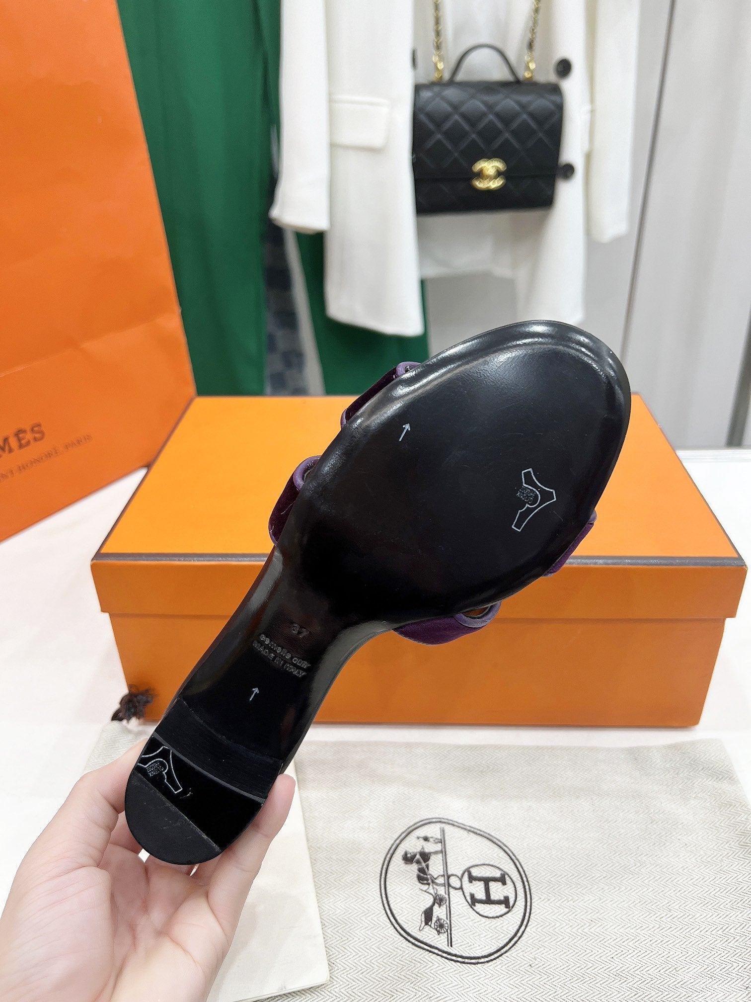 • Material: Sandal in velvet with iconic "H" cut-out.