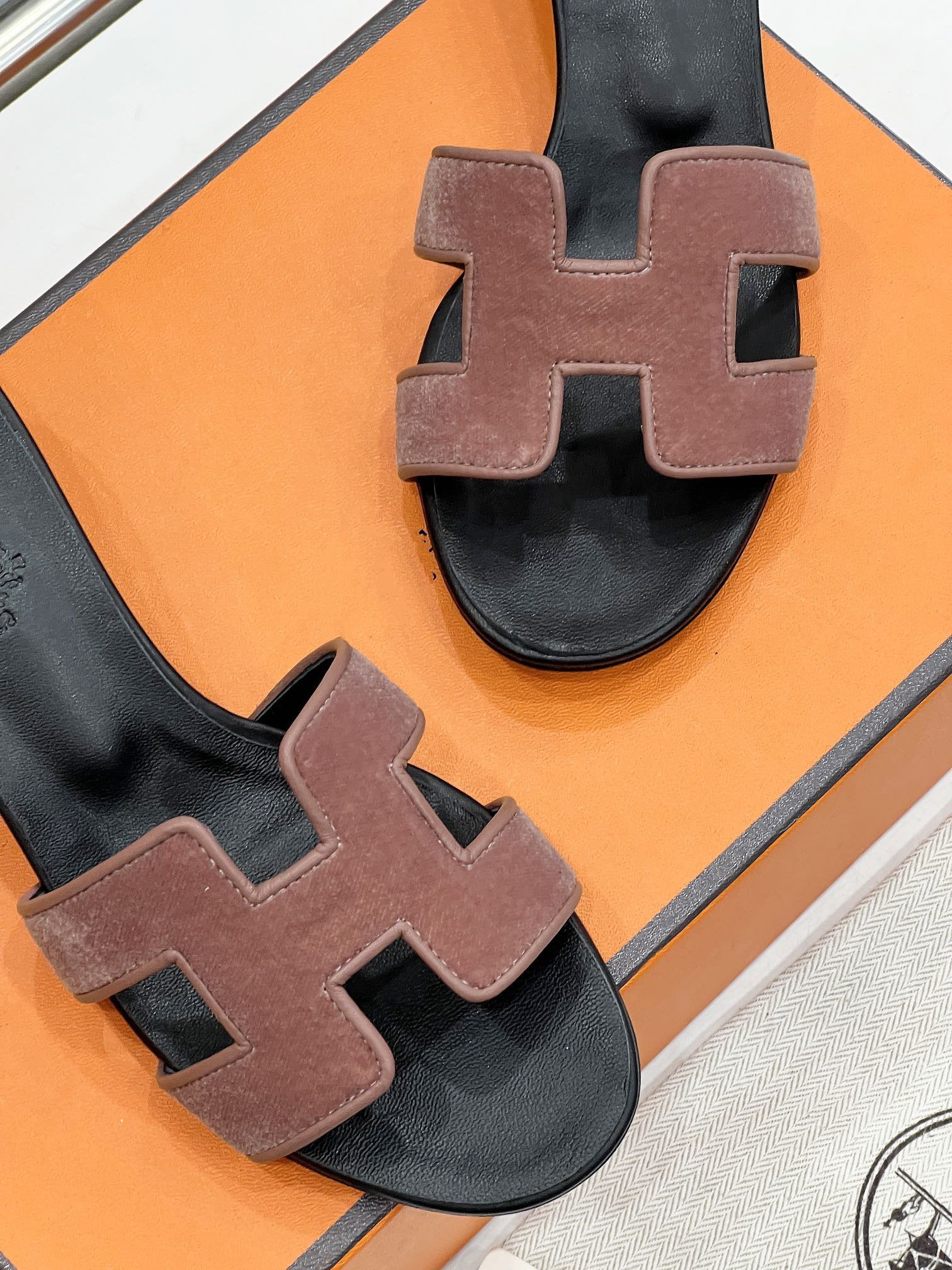 • Material: Sandal in velvet with iconic "H" cut-out.