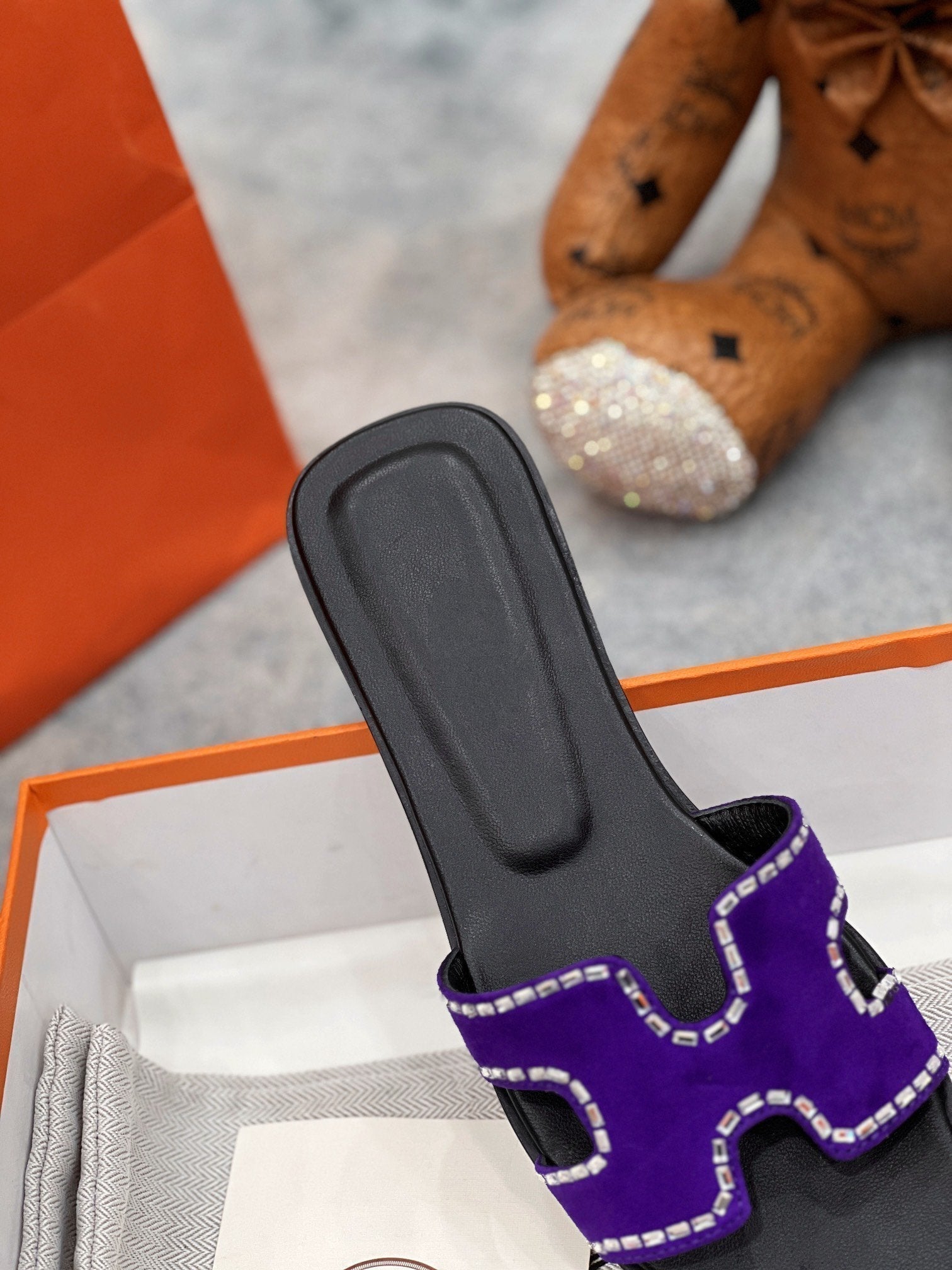 0ran sandal purple black suede goatskin