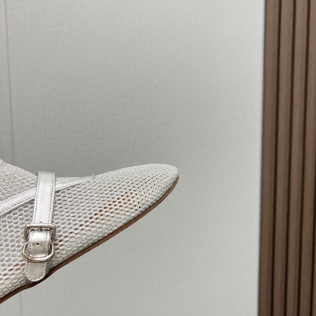 ALAIA SHORT BOOTS IN SILVER MESH FISHNET