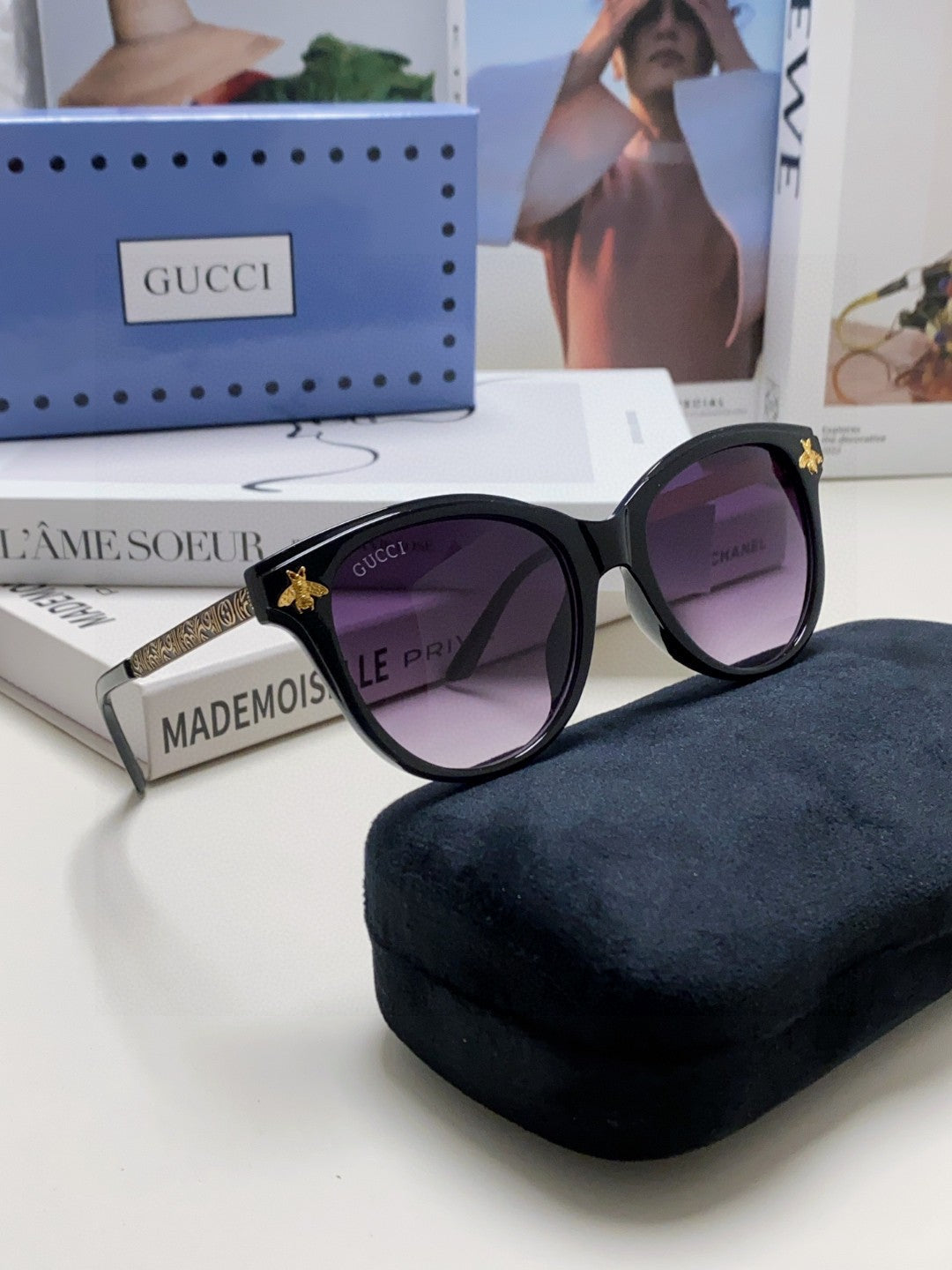 BEE EMBELLISHED BUTTERFLY FRAME SUNGLASSES 570242 IN ACETATE