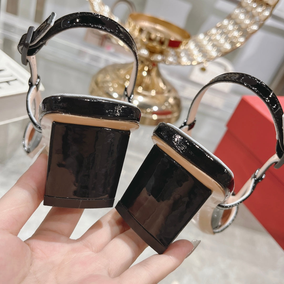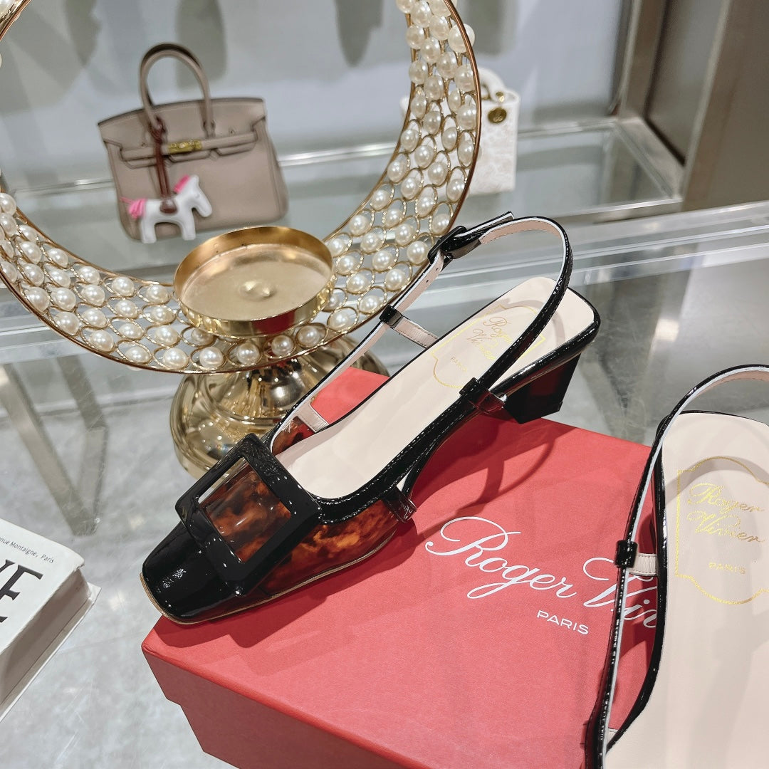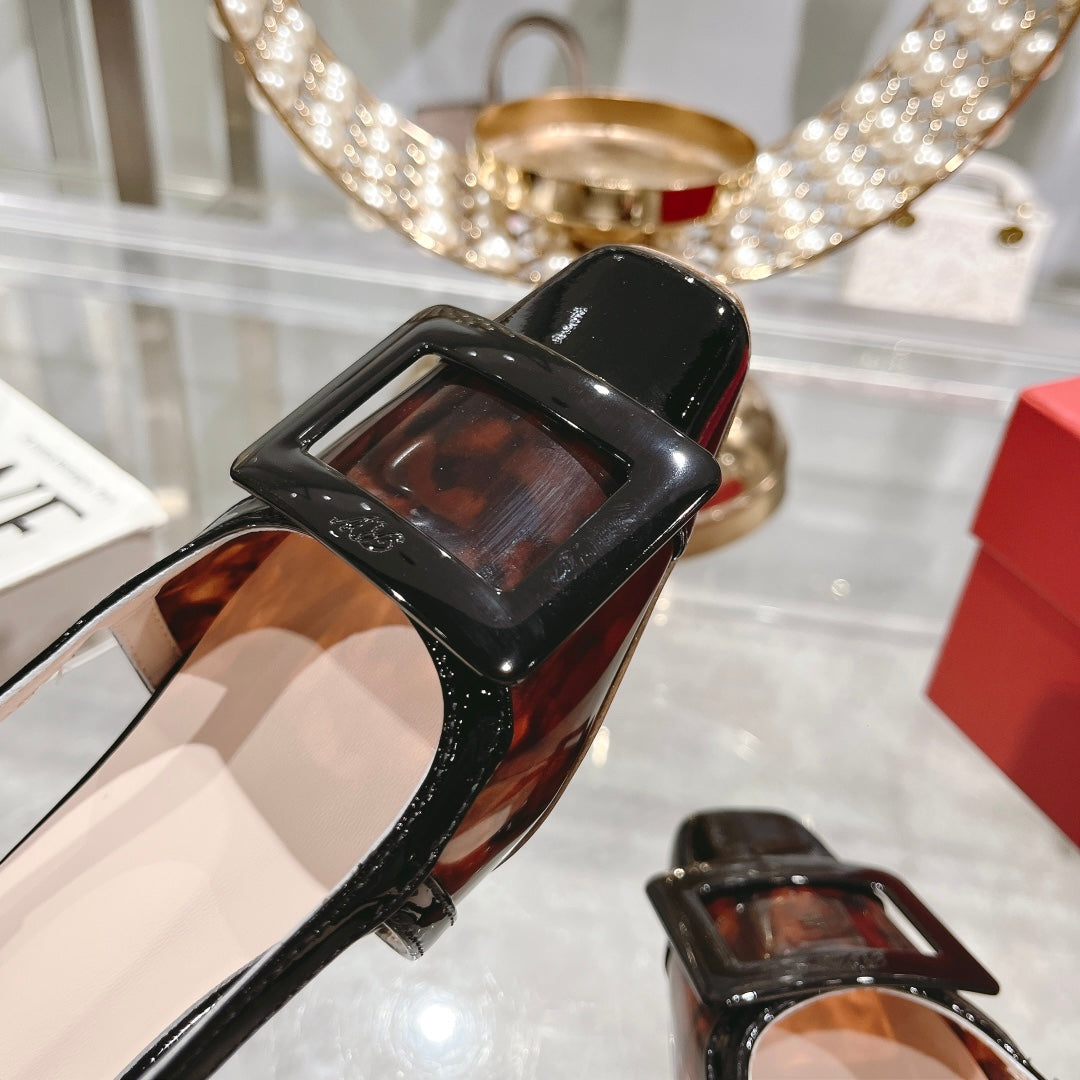 Belle Viv Metal Buckle Slingback Pumps 45 Black Patent Leather