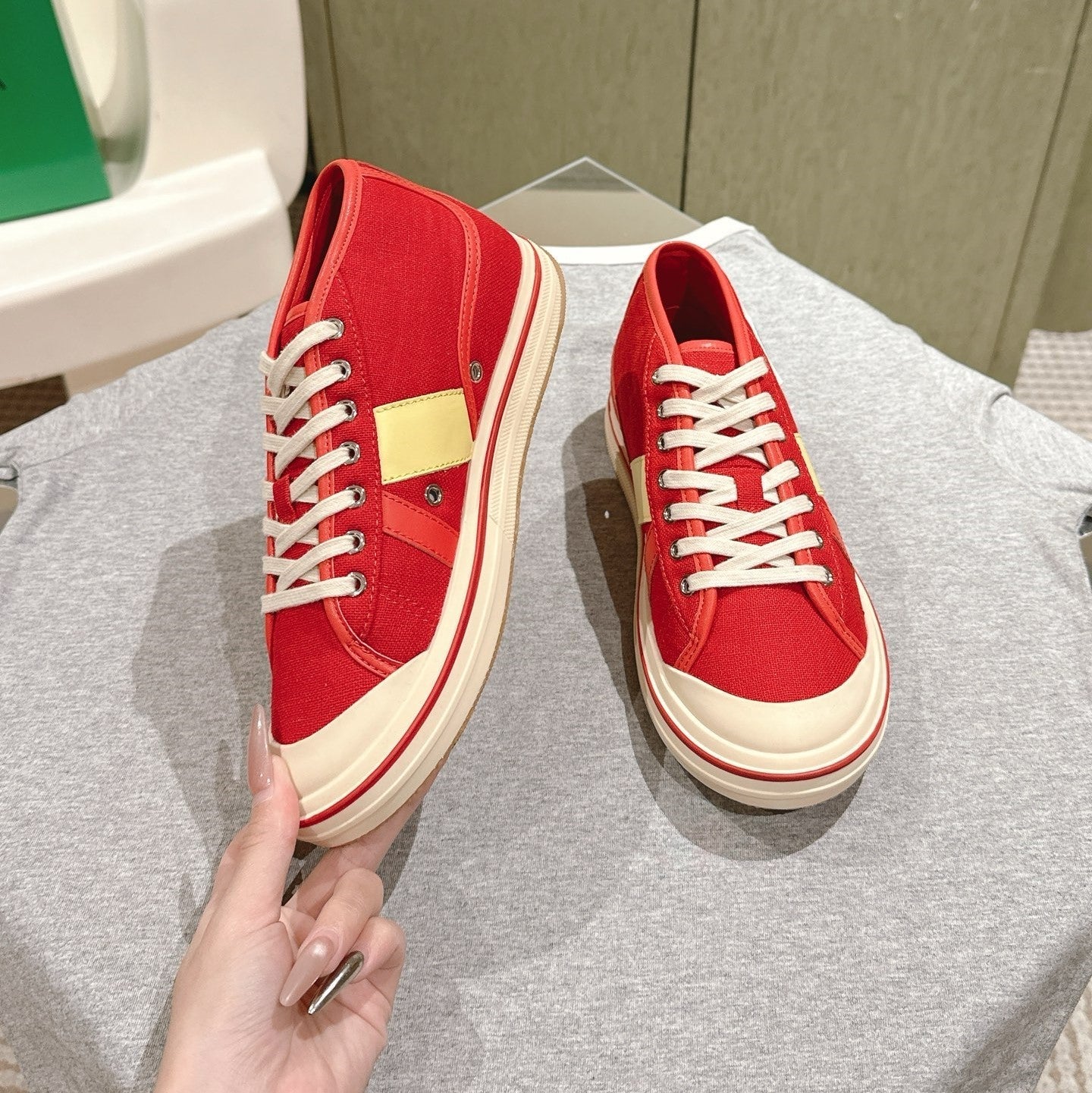 BV Eliot Sneaker Red/Light Yellow Cotton Calfskin 446194