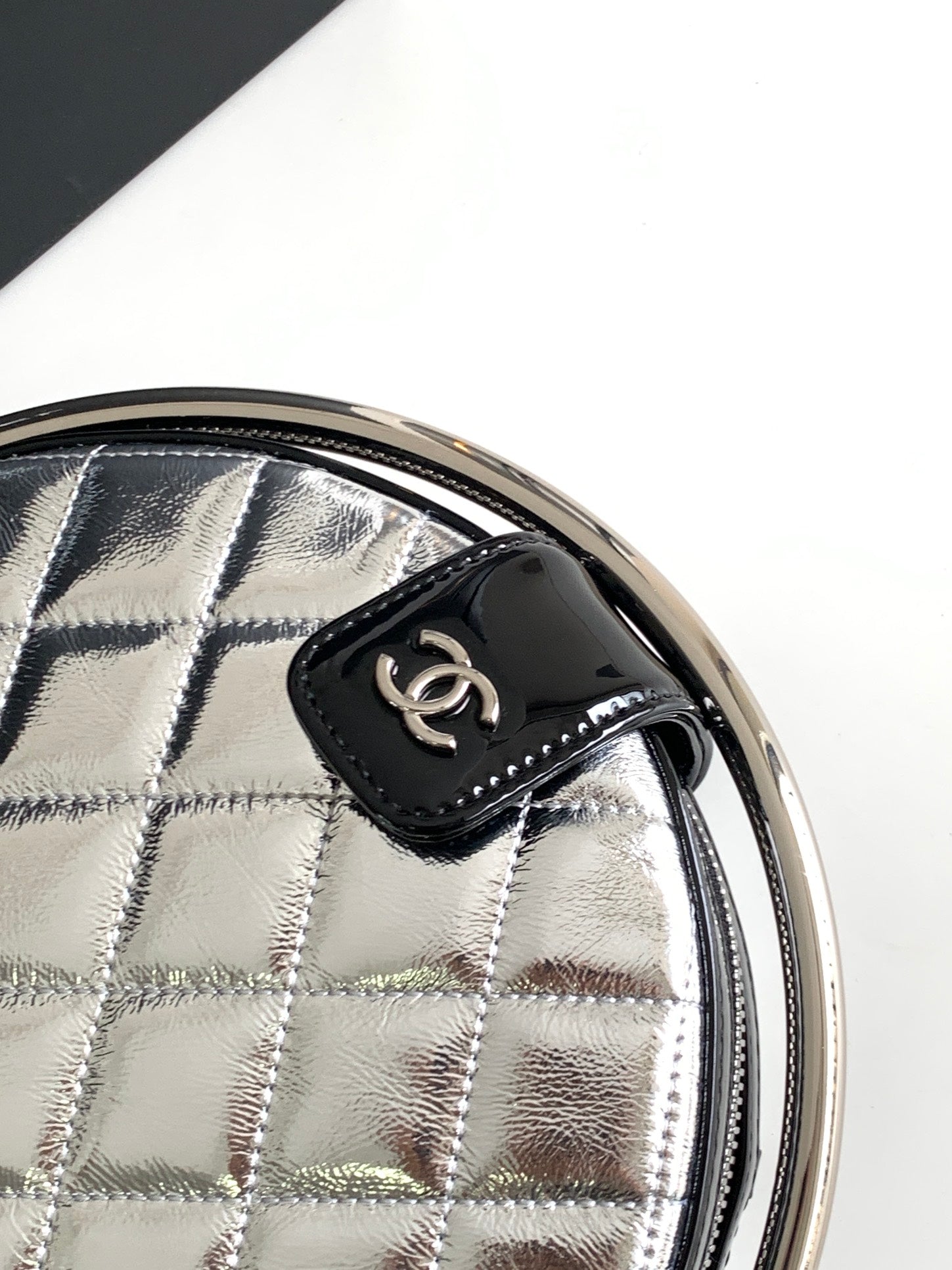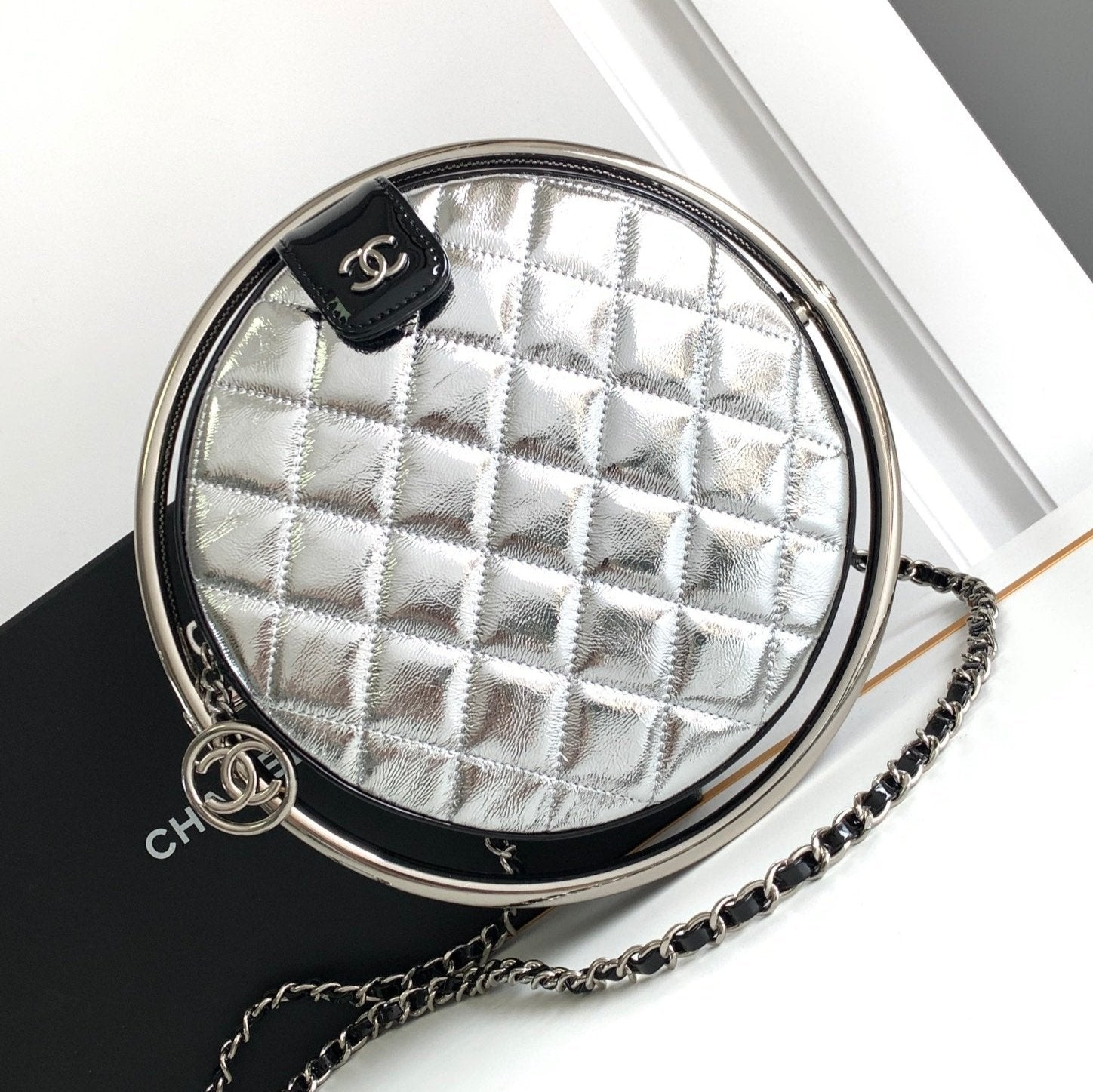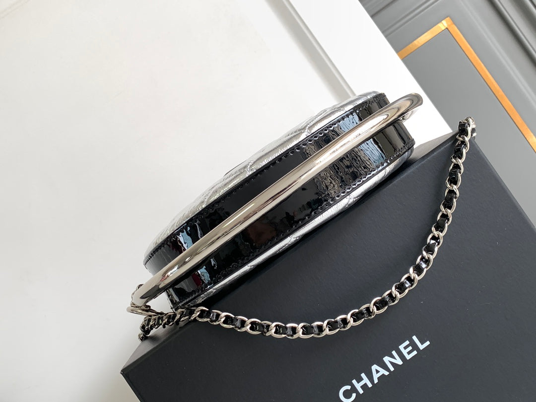 CC 22 EARTH GLOBE ORB CHAIN BAG IN SILVER CALFSKIN