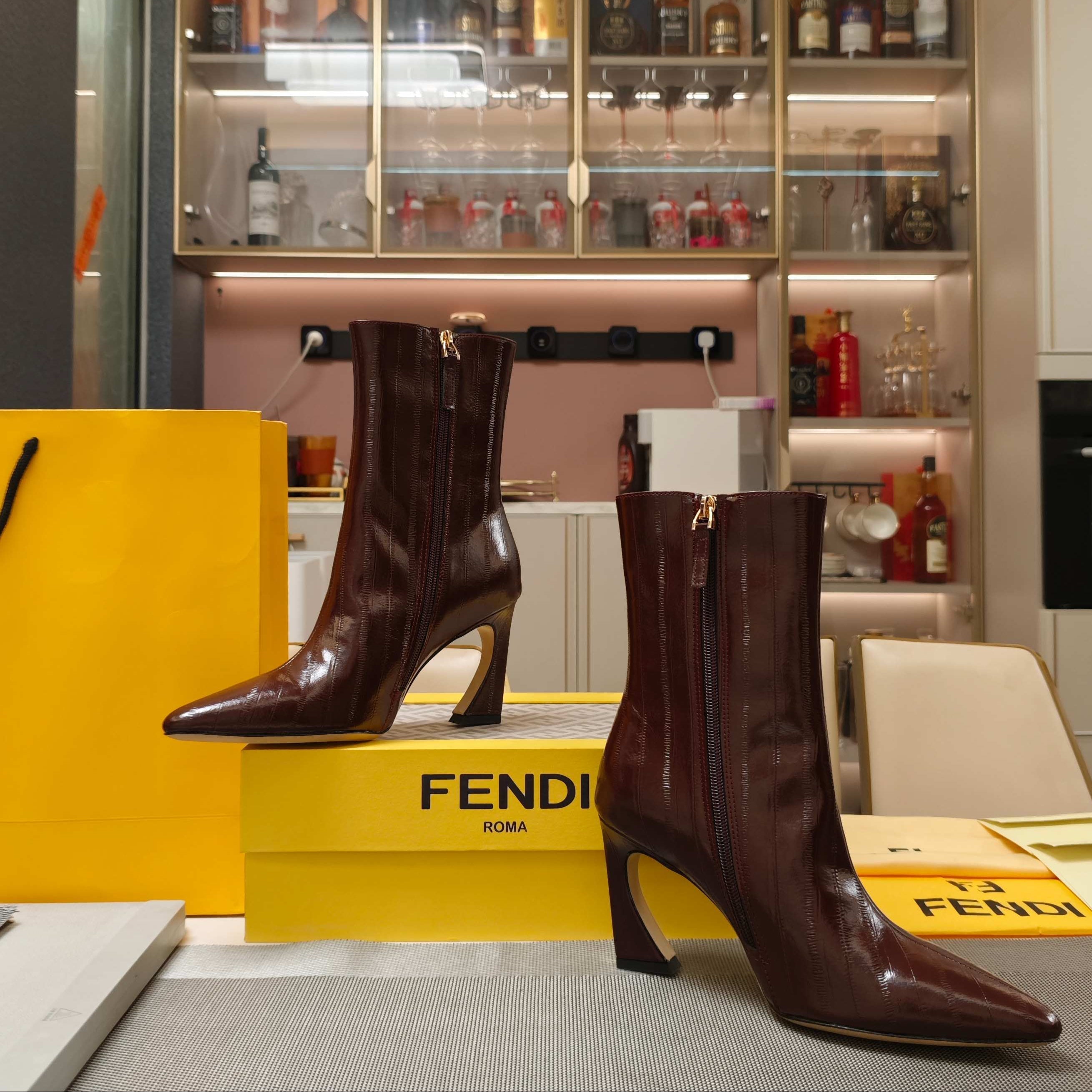 Fendi 25ss High-Heeled Boots Burgundy Sheepskin 502715