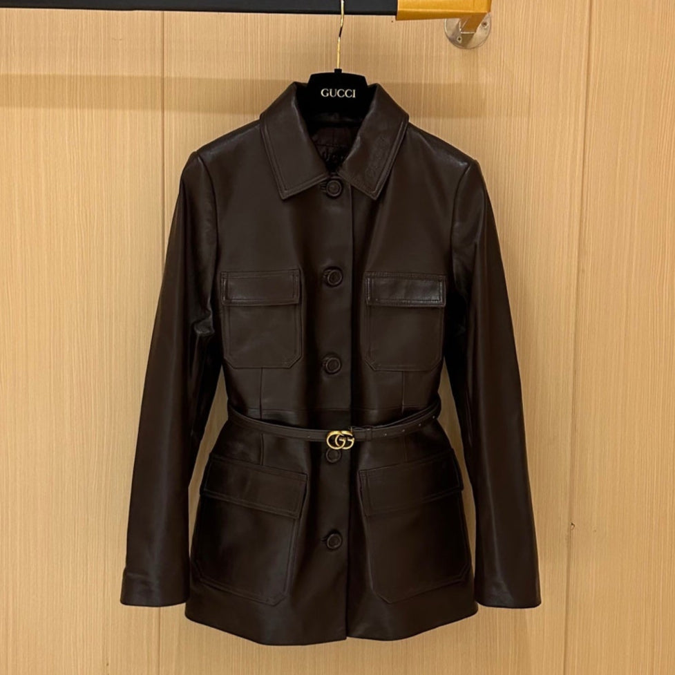 Gucci Jacket Brown Chocolate Leather 276991