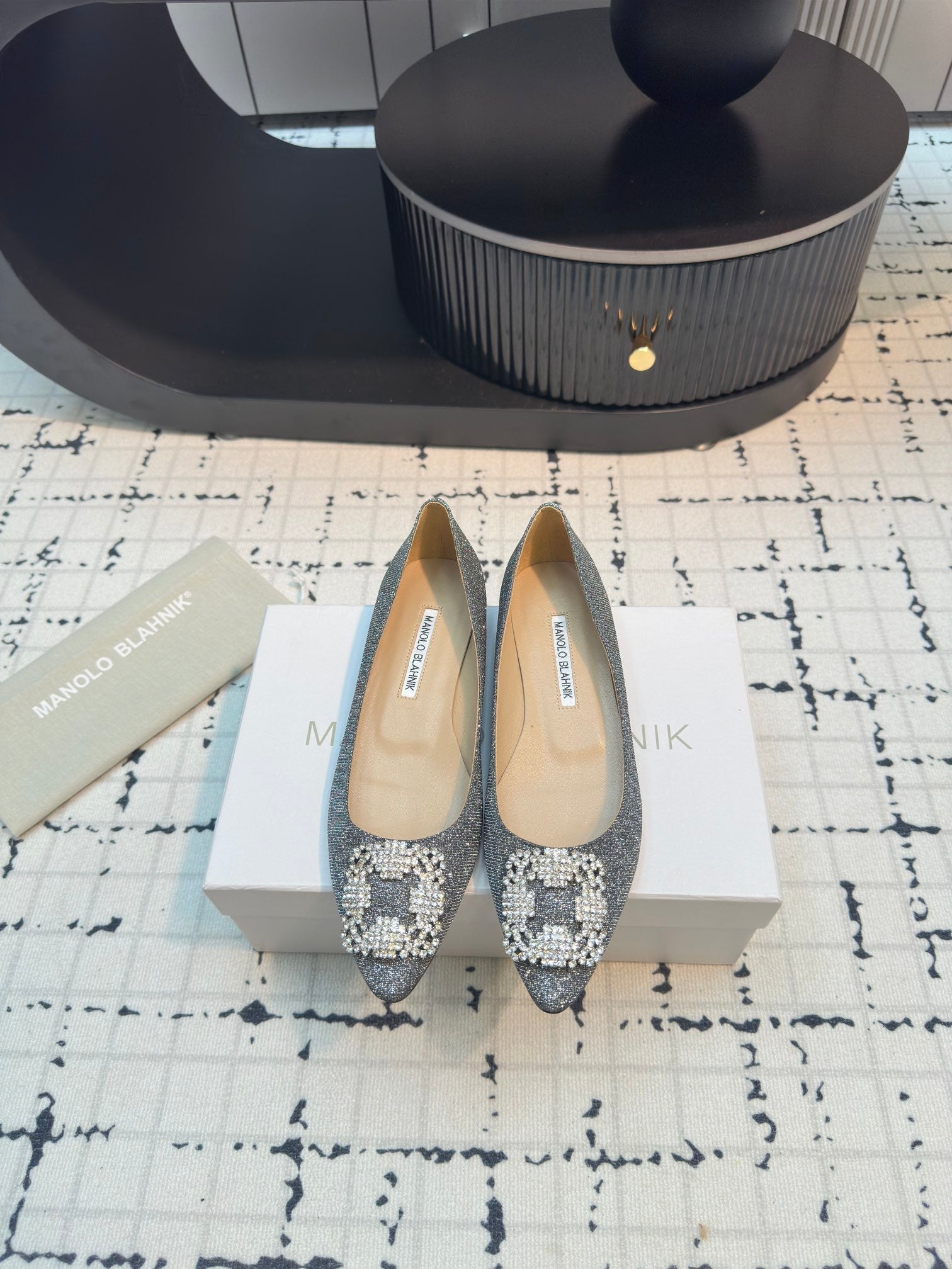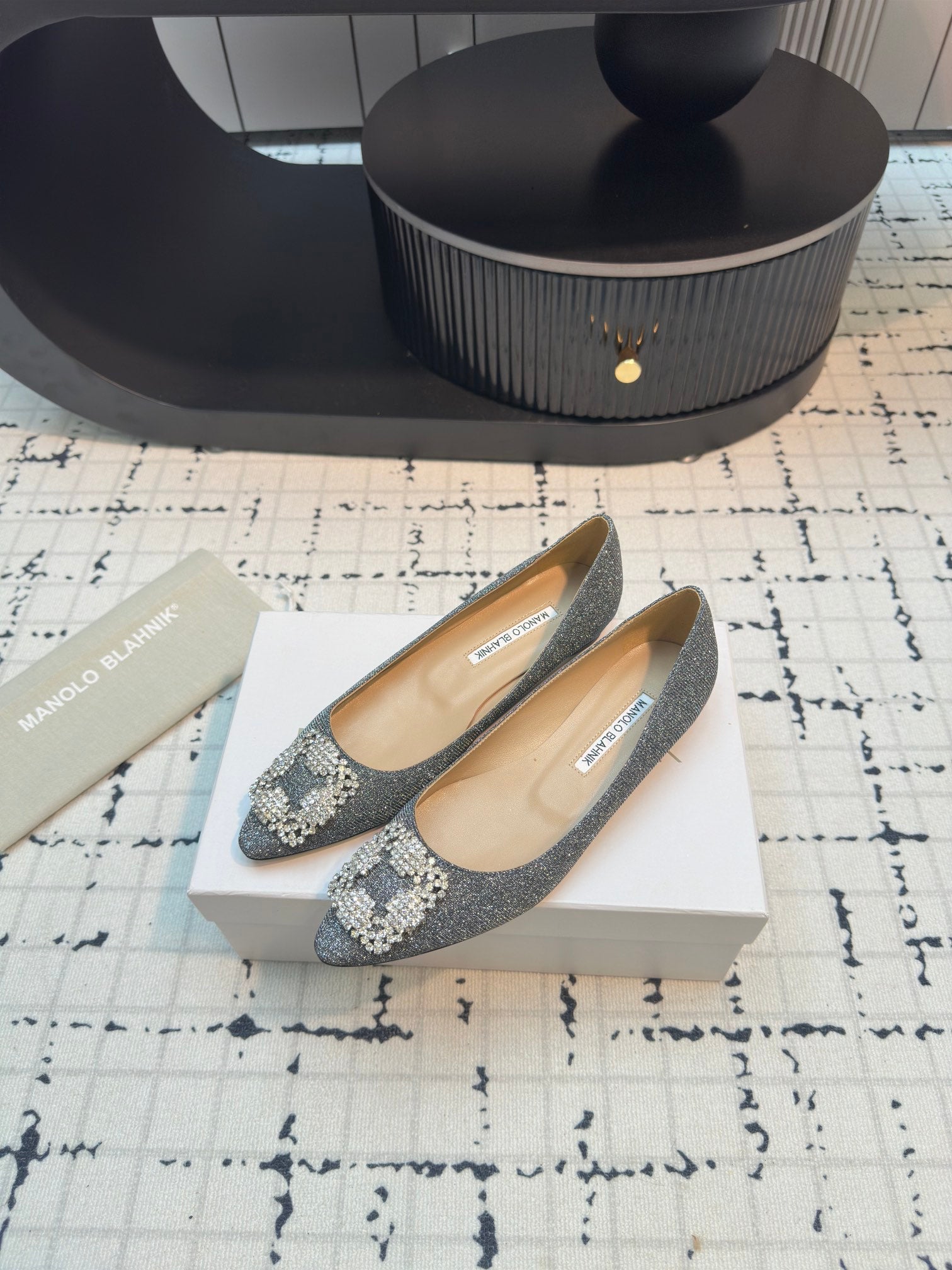 Hangisi 20 Ballet Flat Silver Glitter Fabric Leather Jewel Buckle 912607