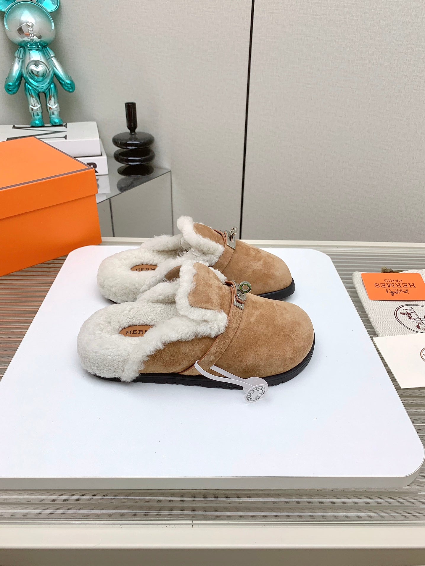 HM Mule 30mm In Light Brown With Fleece And Suede Lining 971394