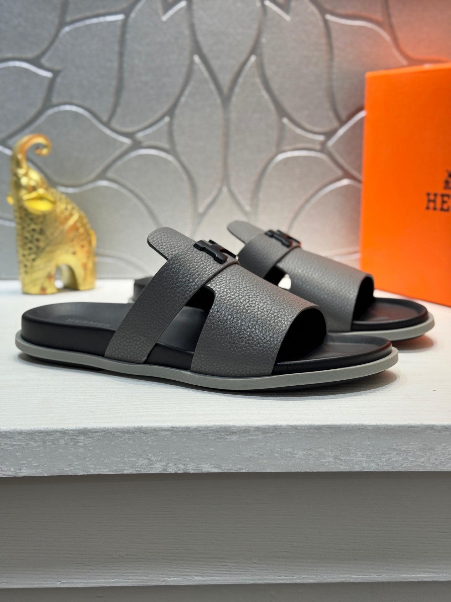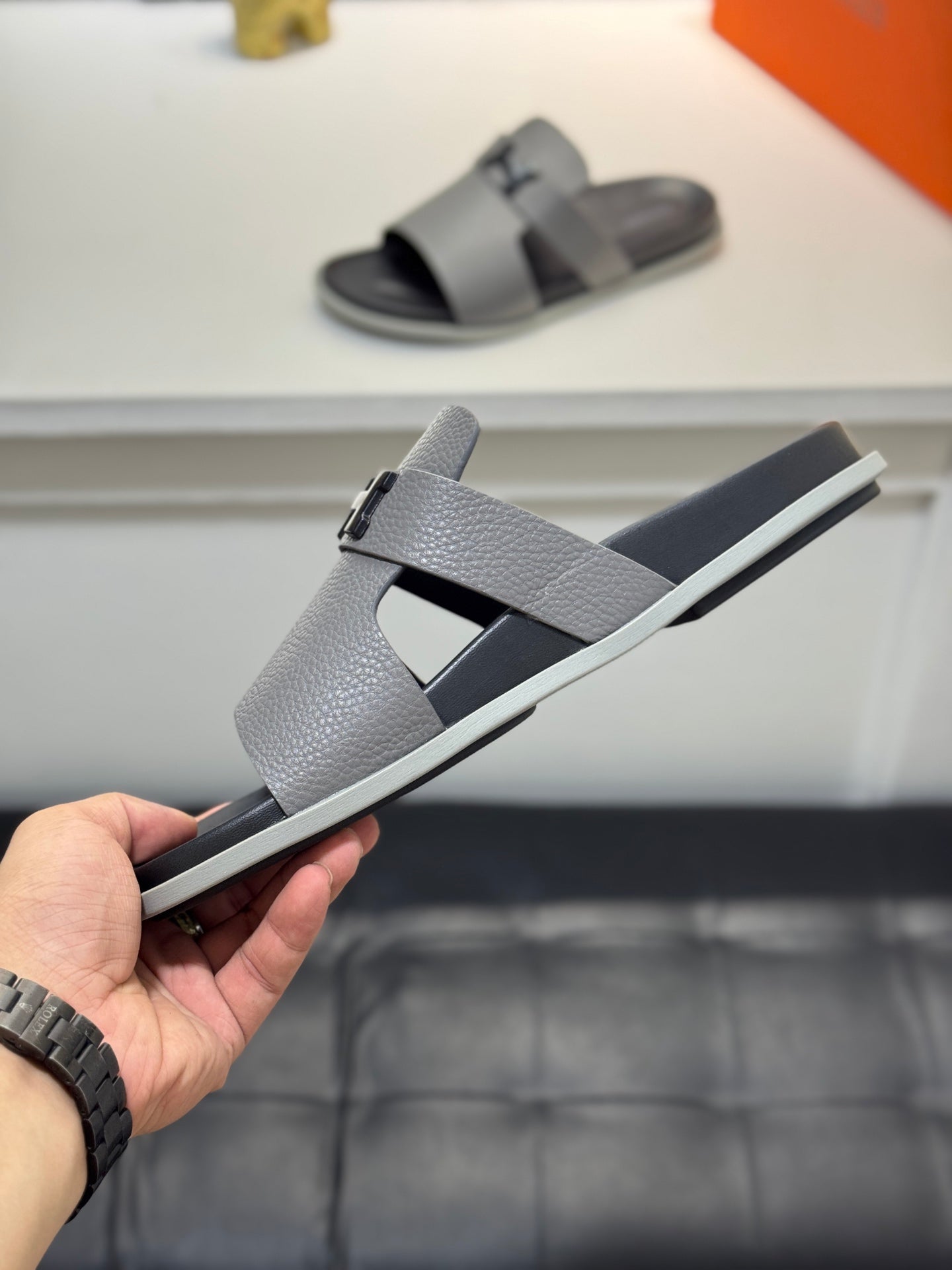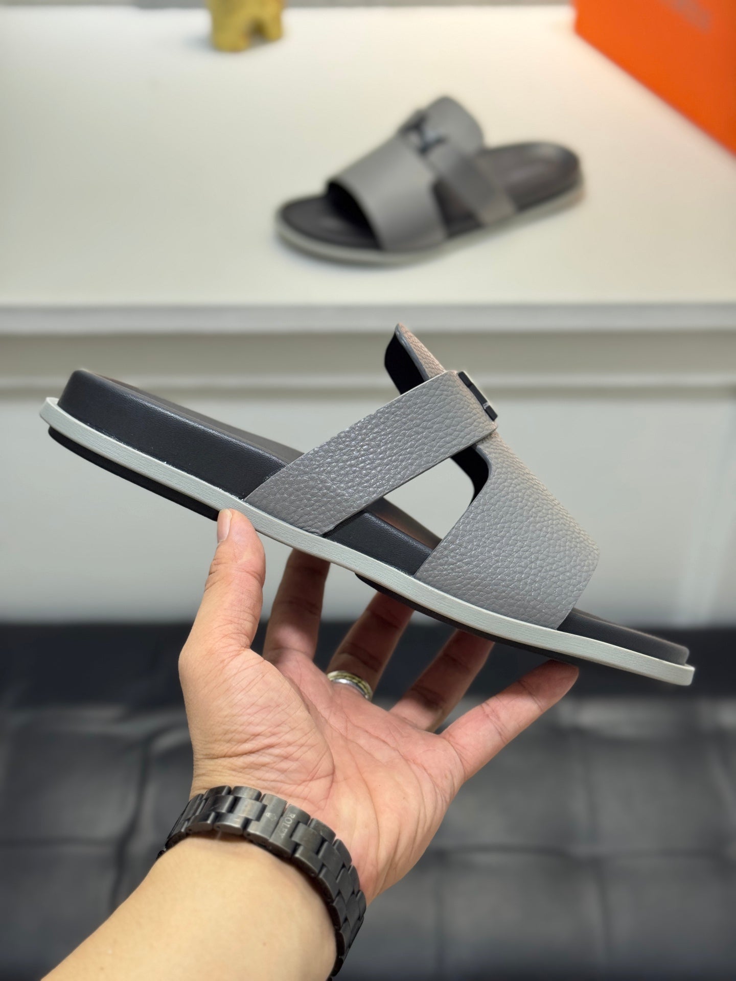 HM Oran H Black Buckle Slippers in Gray Cowhide 735249
