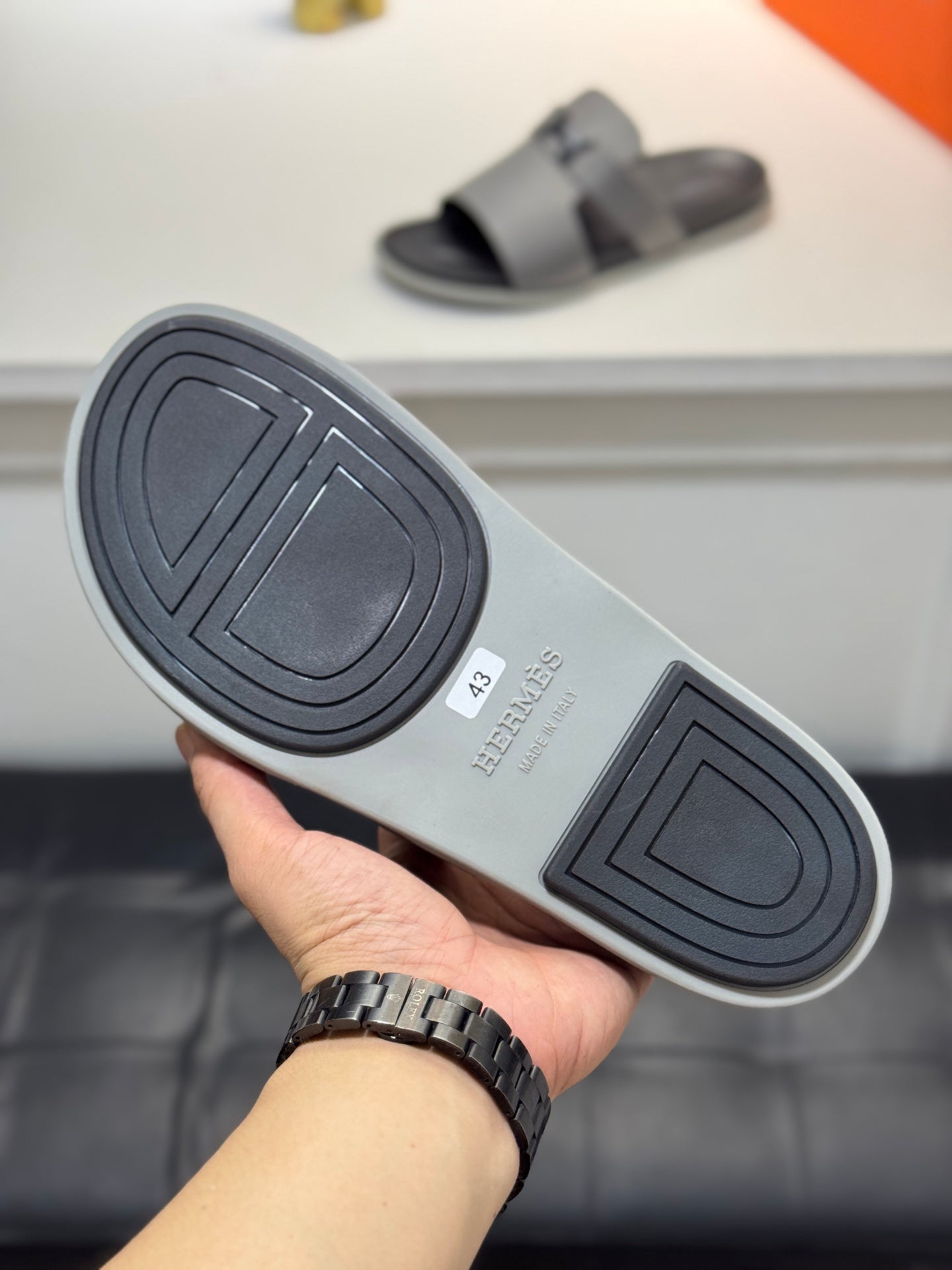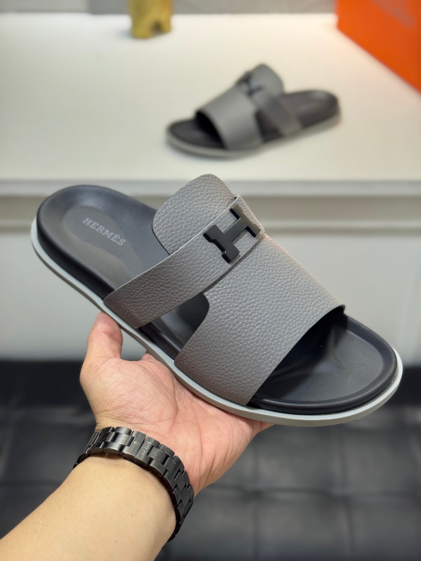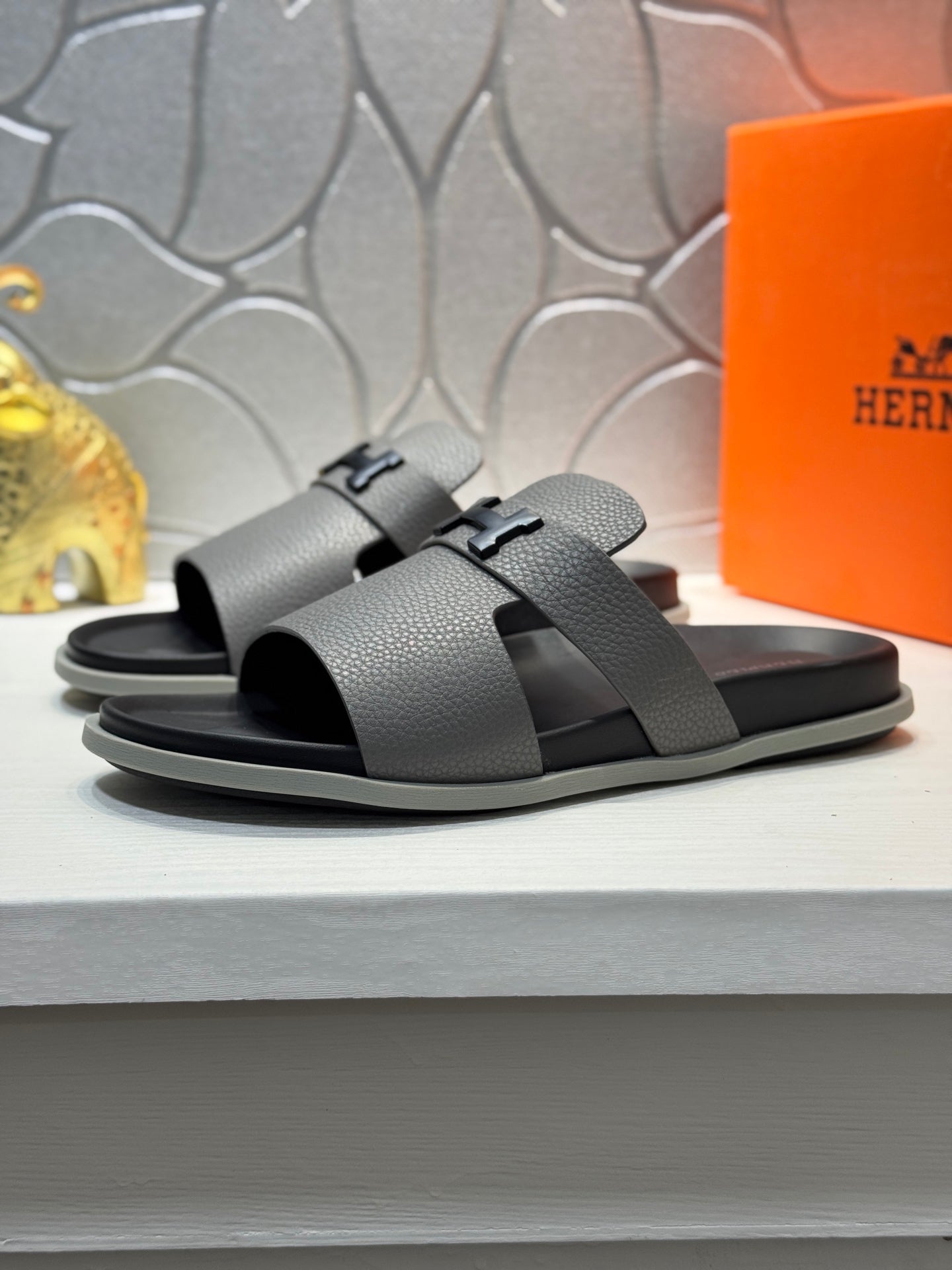 HM Oran H Black Buckle Slippers in Gray Cowhide 735249