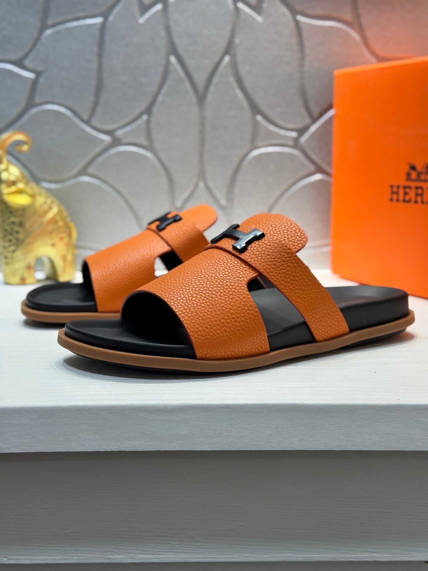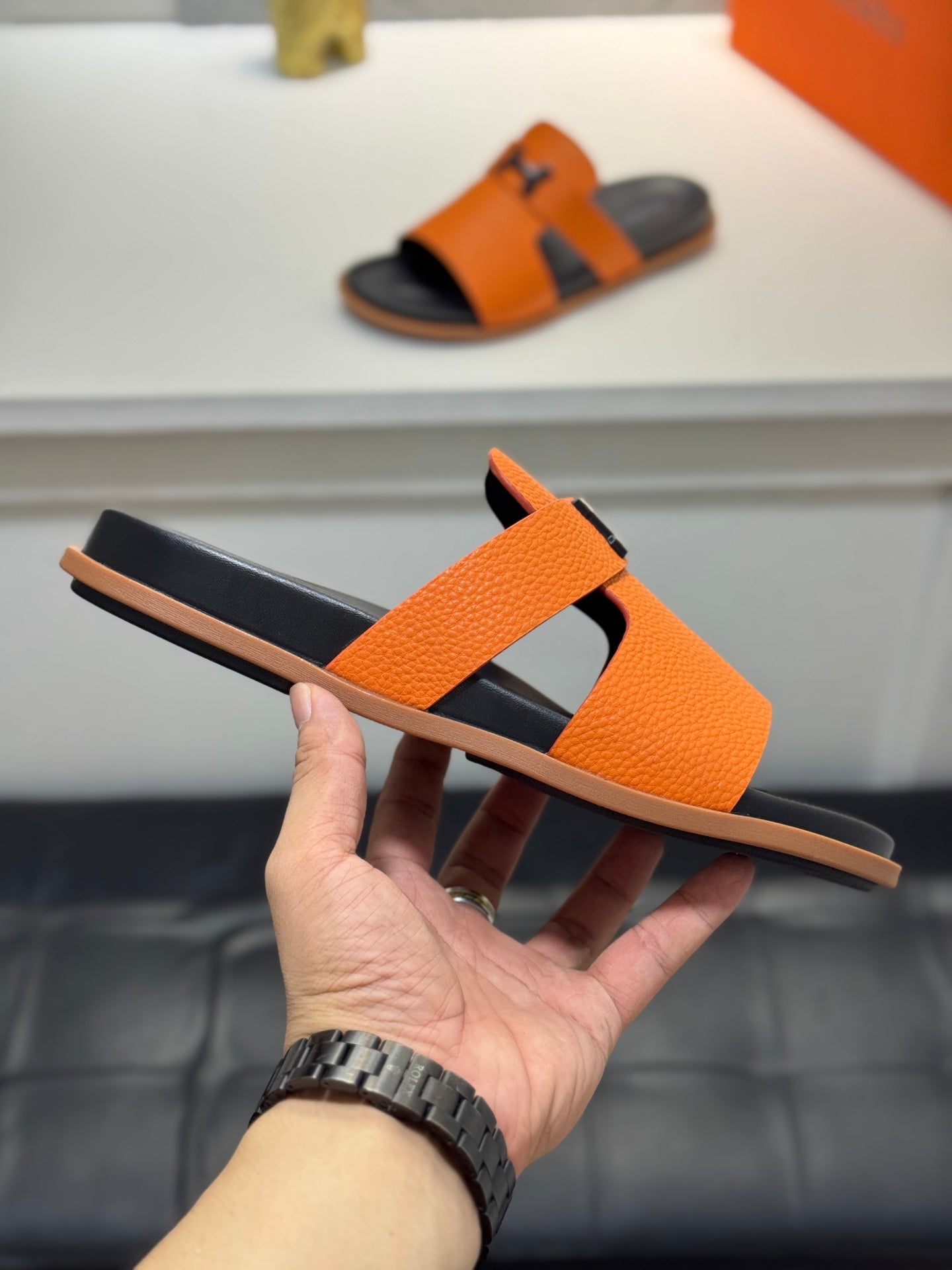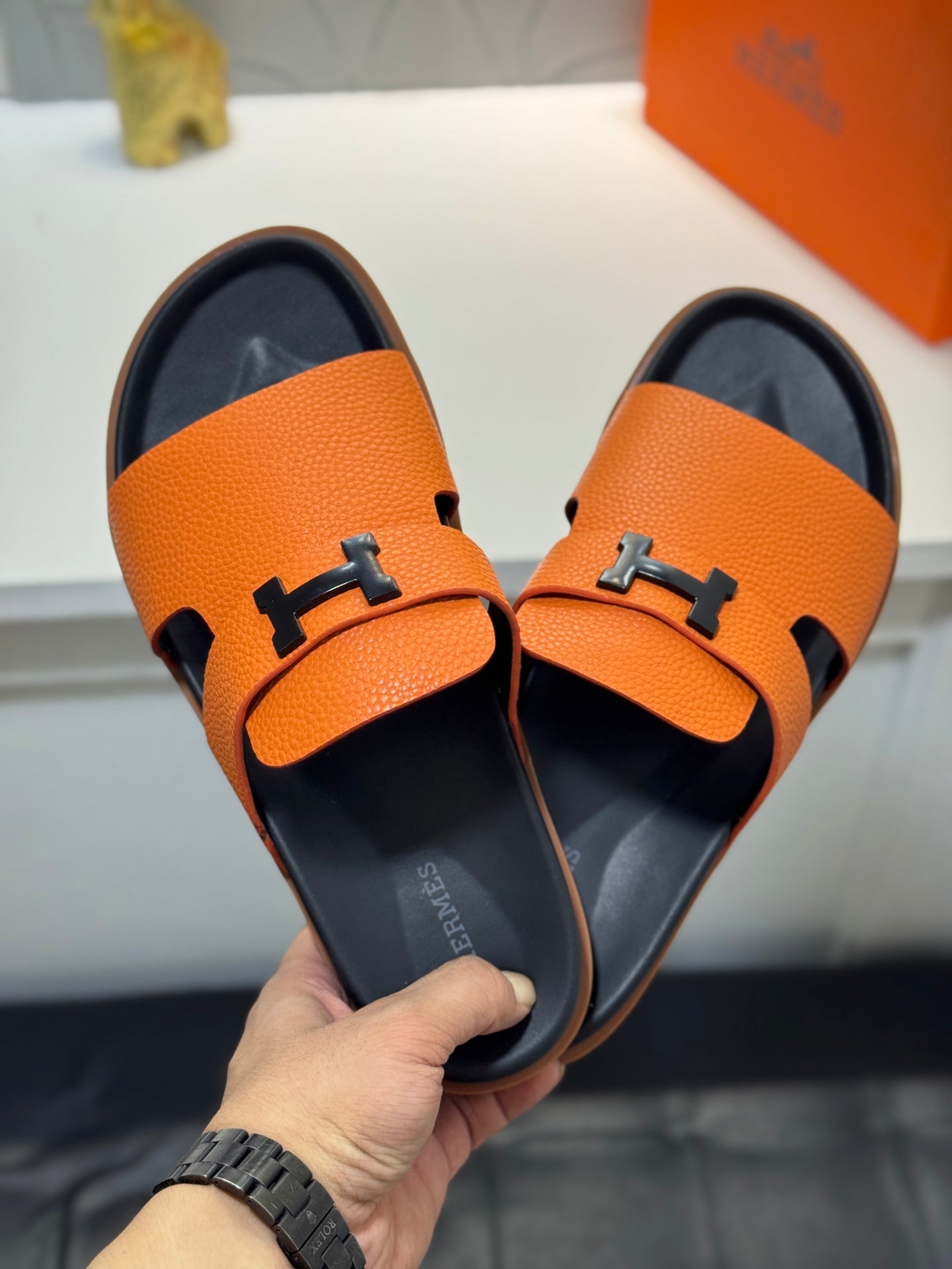 HM Oran H Black Buckle Slippers in Orange Cowhide 735250