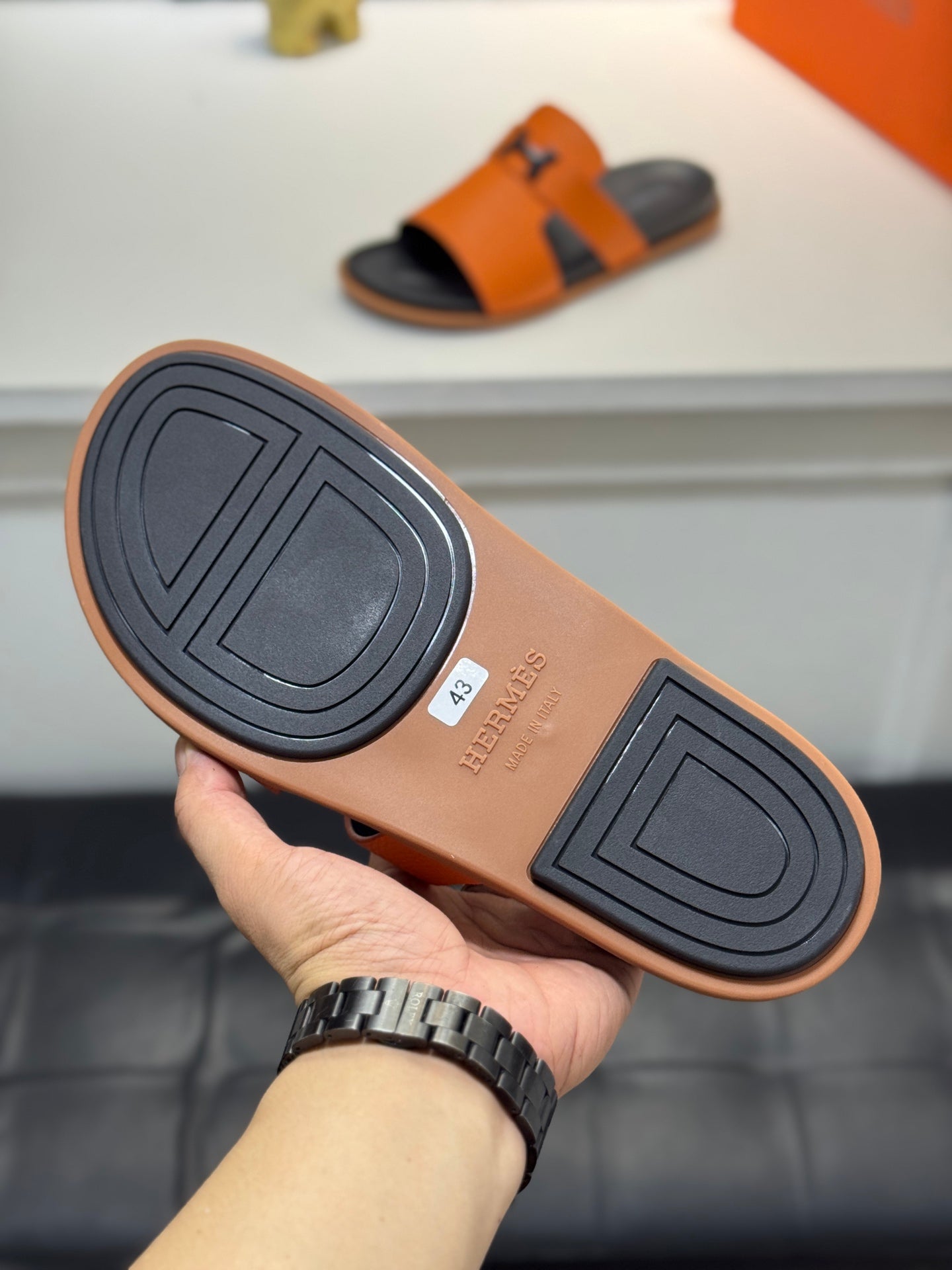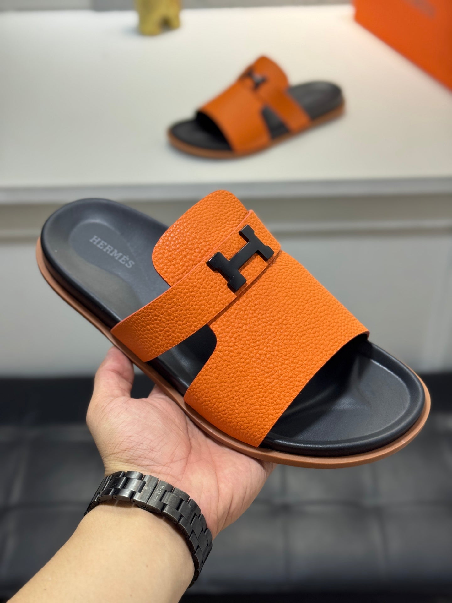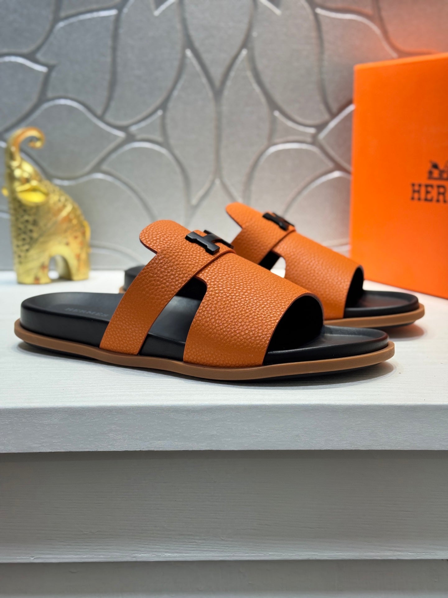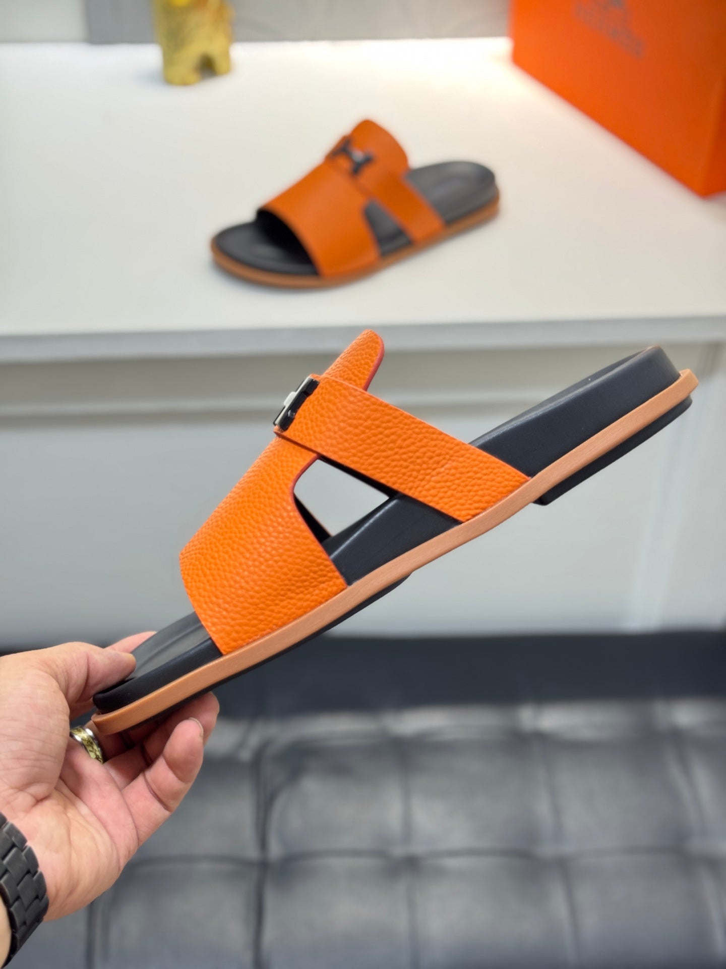 HM Oran H Black Buckle Slippers in Orange Cowhide 735250