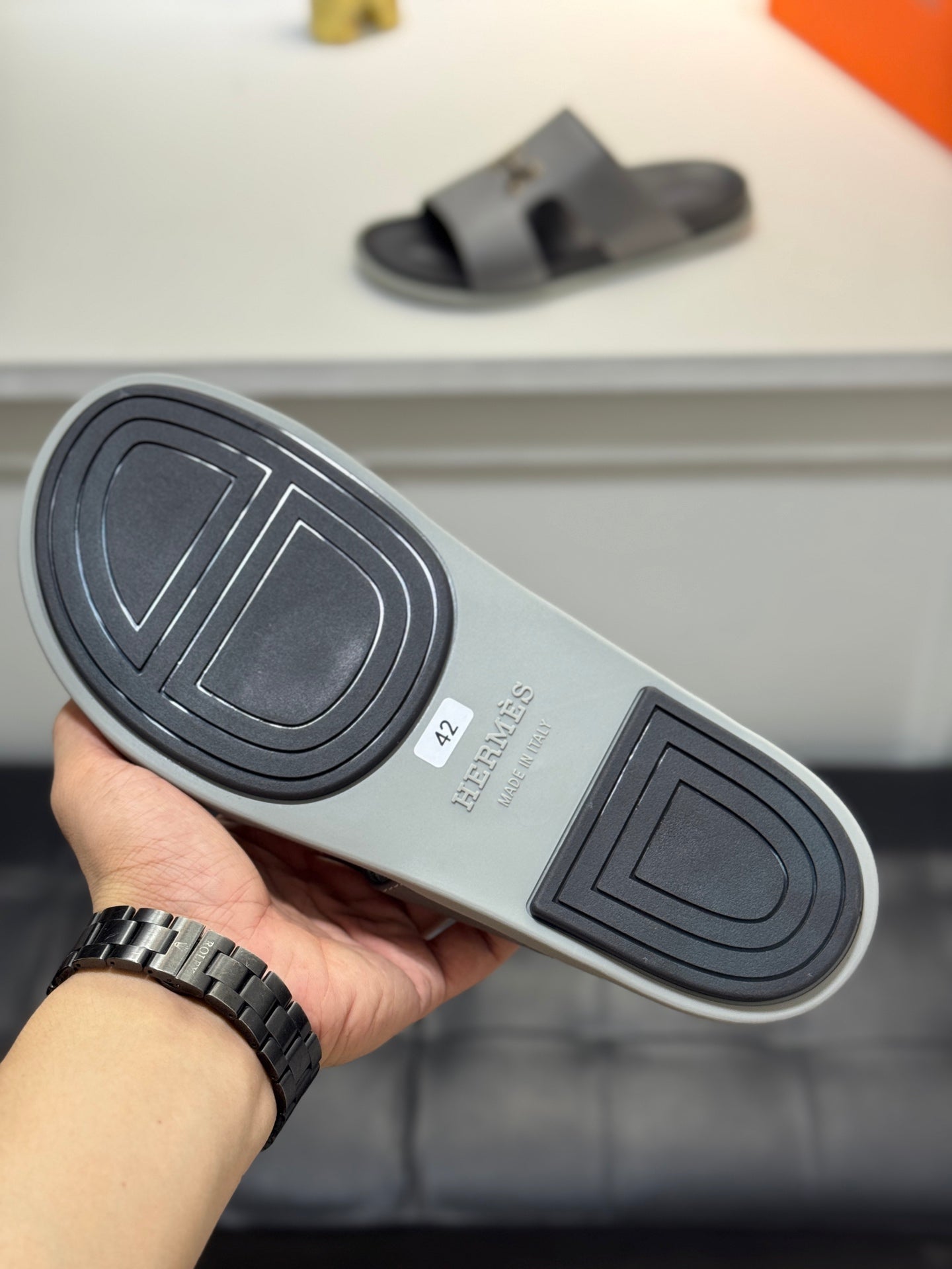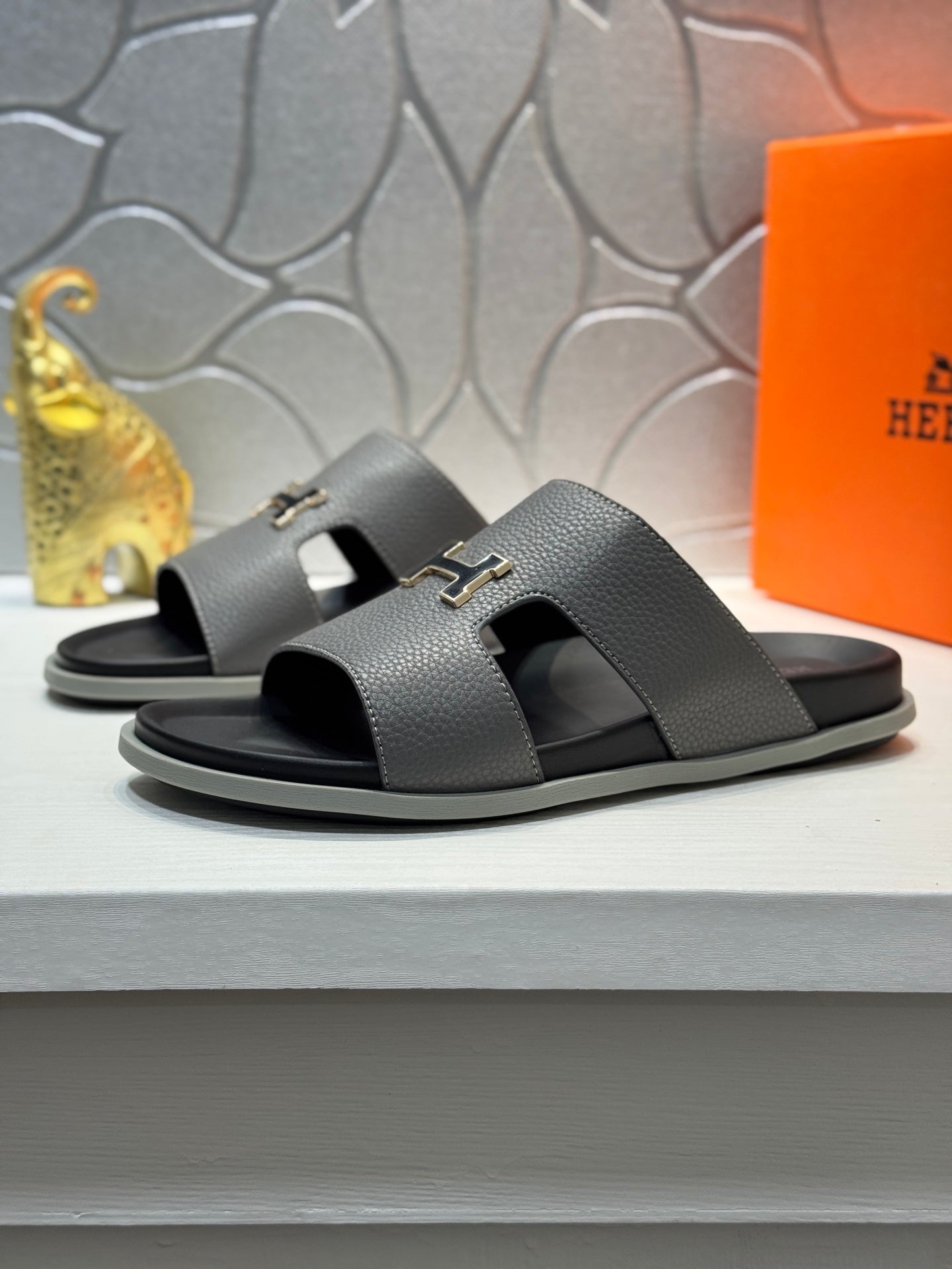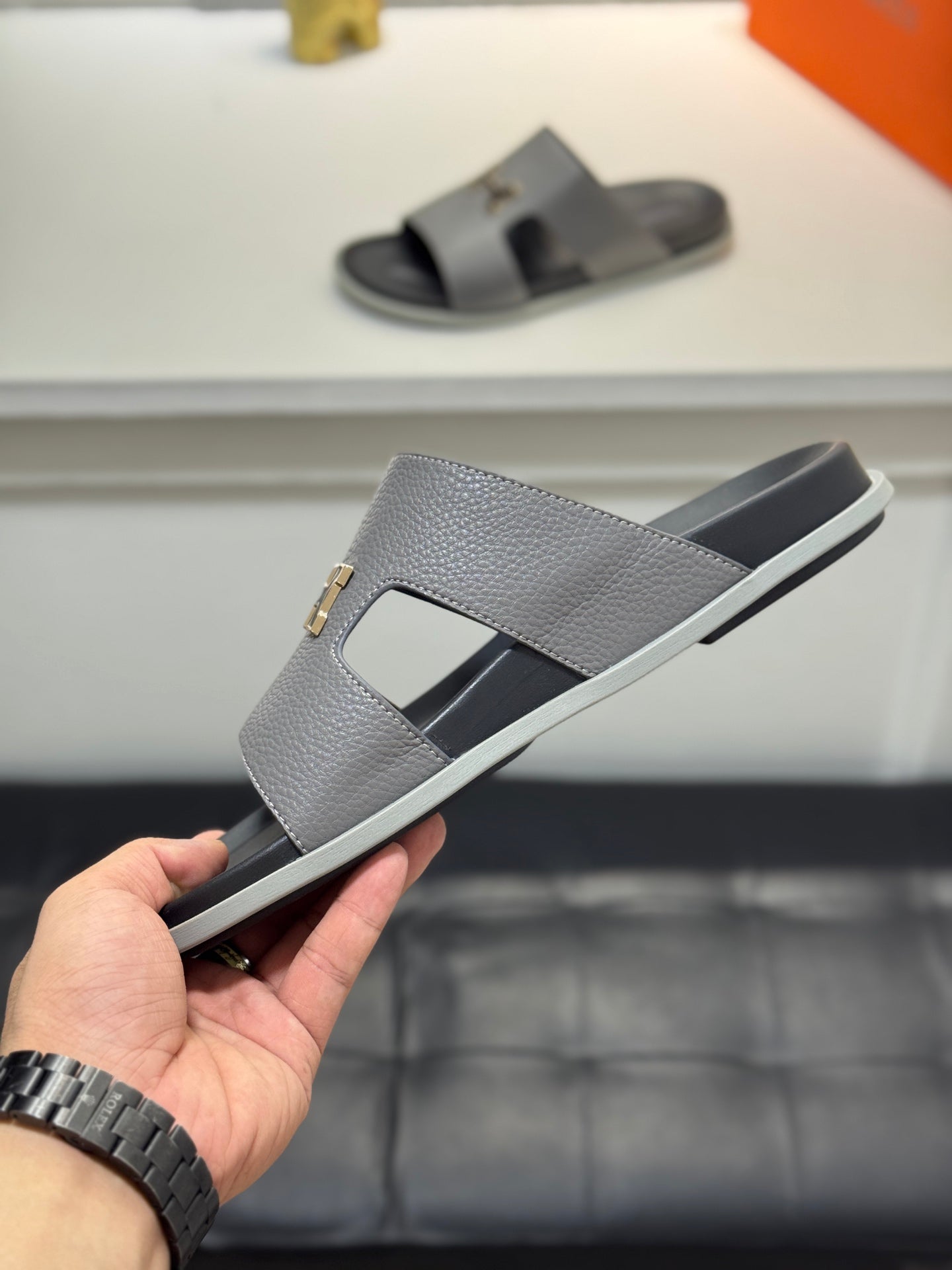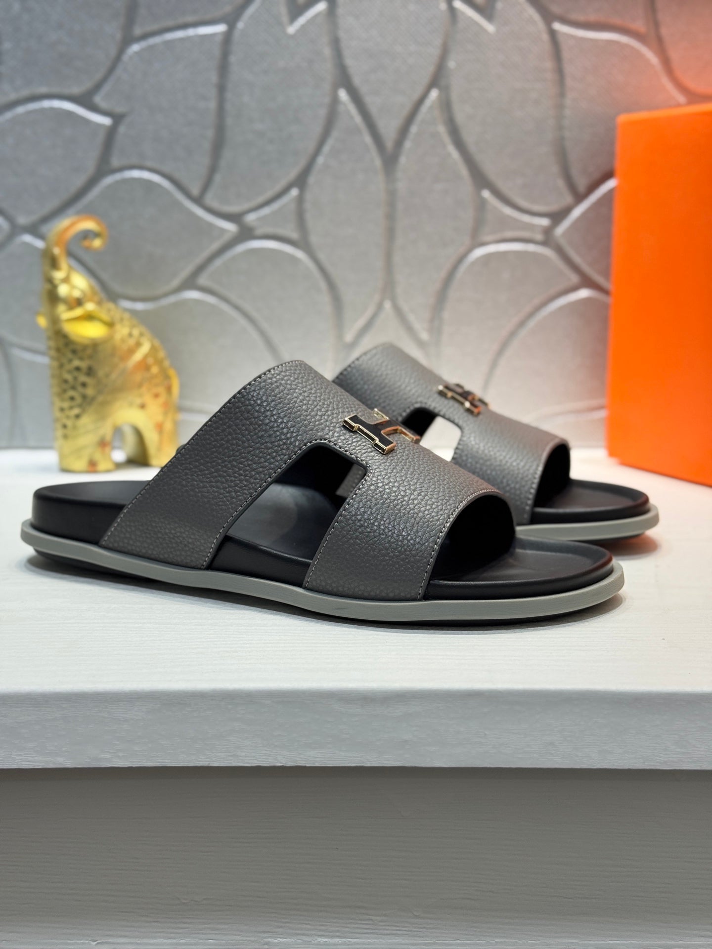 HM Oran H Black Gold Buckle Slippers in Gray Cowhide 735245