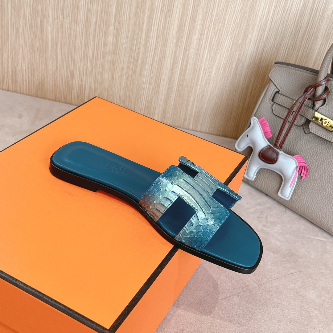 HM Oran Sandals Dark Teal Calfskin 312781