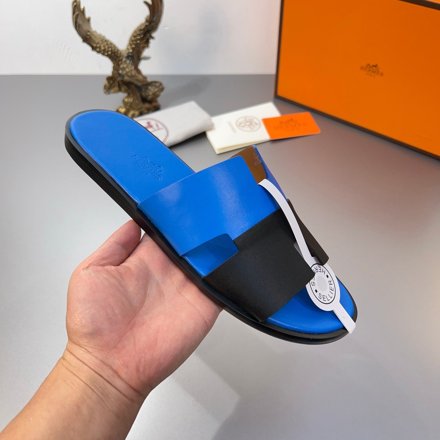 HM Oran Slippers in Blue and Black Calfskin 735649