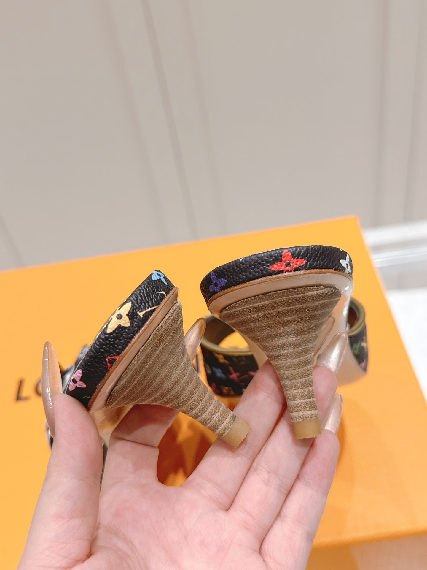 LV Floral Embroidered High Heels Black with Monogram Multicolor Leather 480509