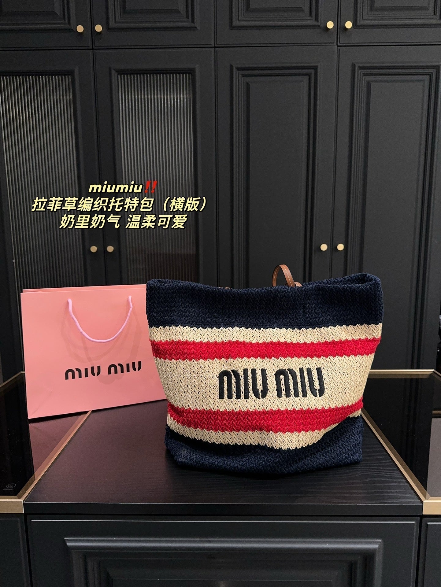 TOTE BAG 36 IN COLORFUL HORIZONTAL RAFFIA WOVEN