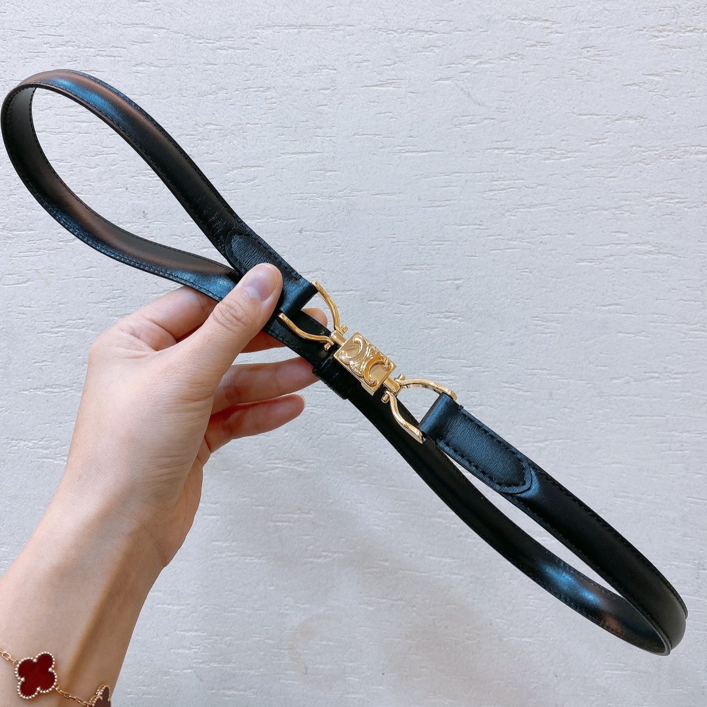 Hook & Loop 20mm TRIOMPHE Logo Square Adjustable Belt Black Calfskin Ghw