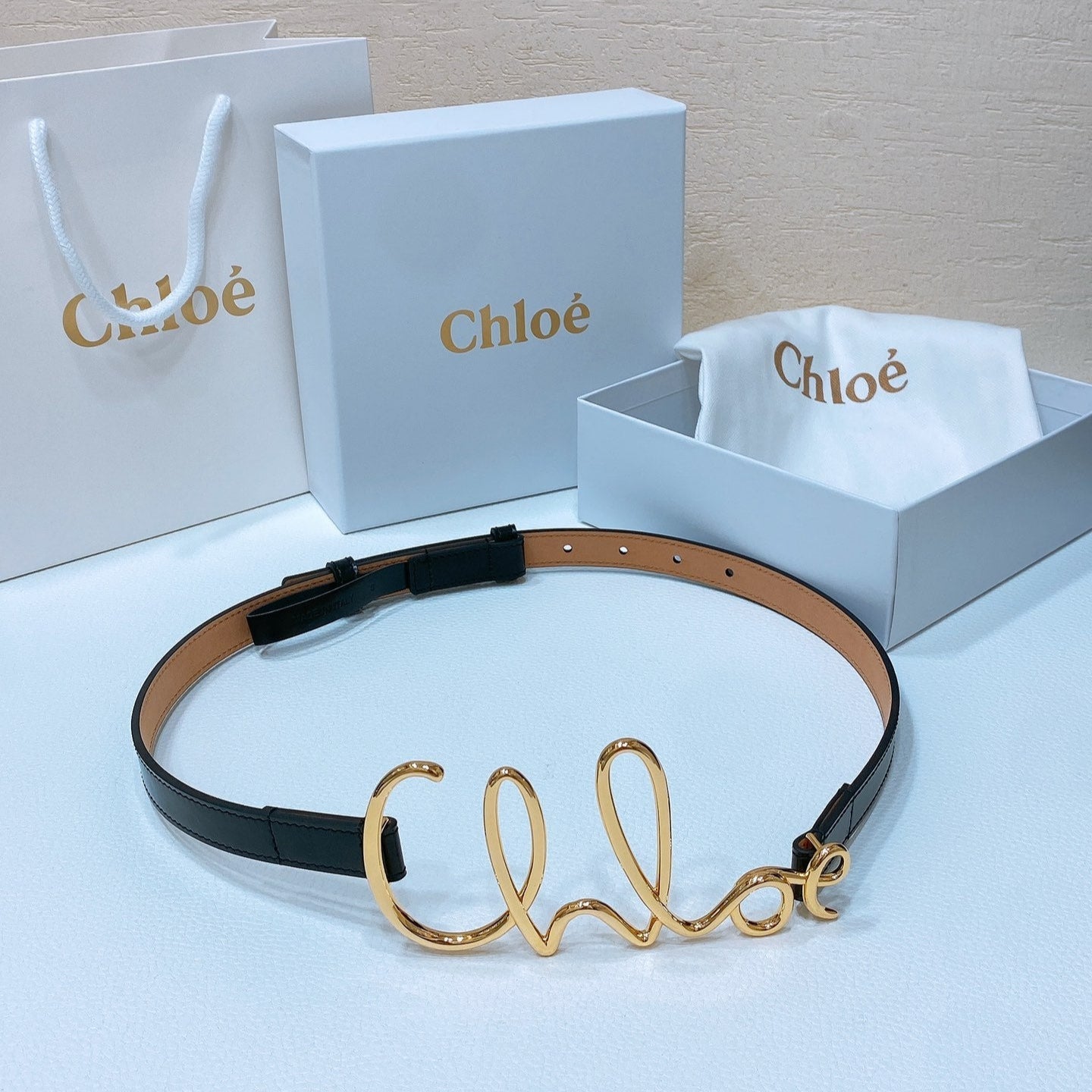 The Chloé Iconic Small Belt In Soft Black Calfskin And Brass