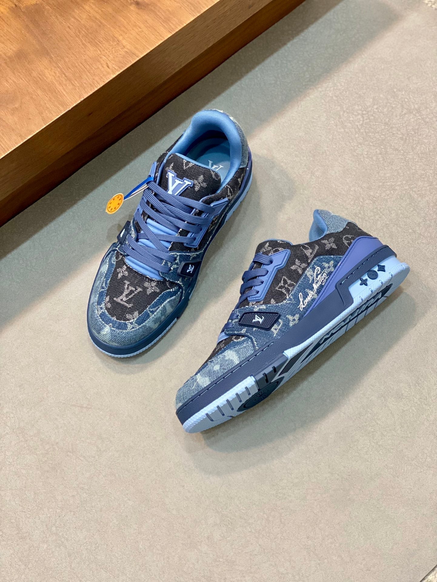• Upper: "Bold colors are used to highlight the exquisite design, inspired by classic basketball shoes. The LV logo is hand-embroidered on one side."