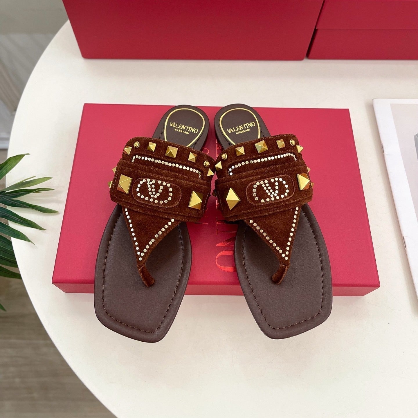 Plaster Caster Buffalo Thong Sandal Rust Suede Calfskin And Cowhide 307473