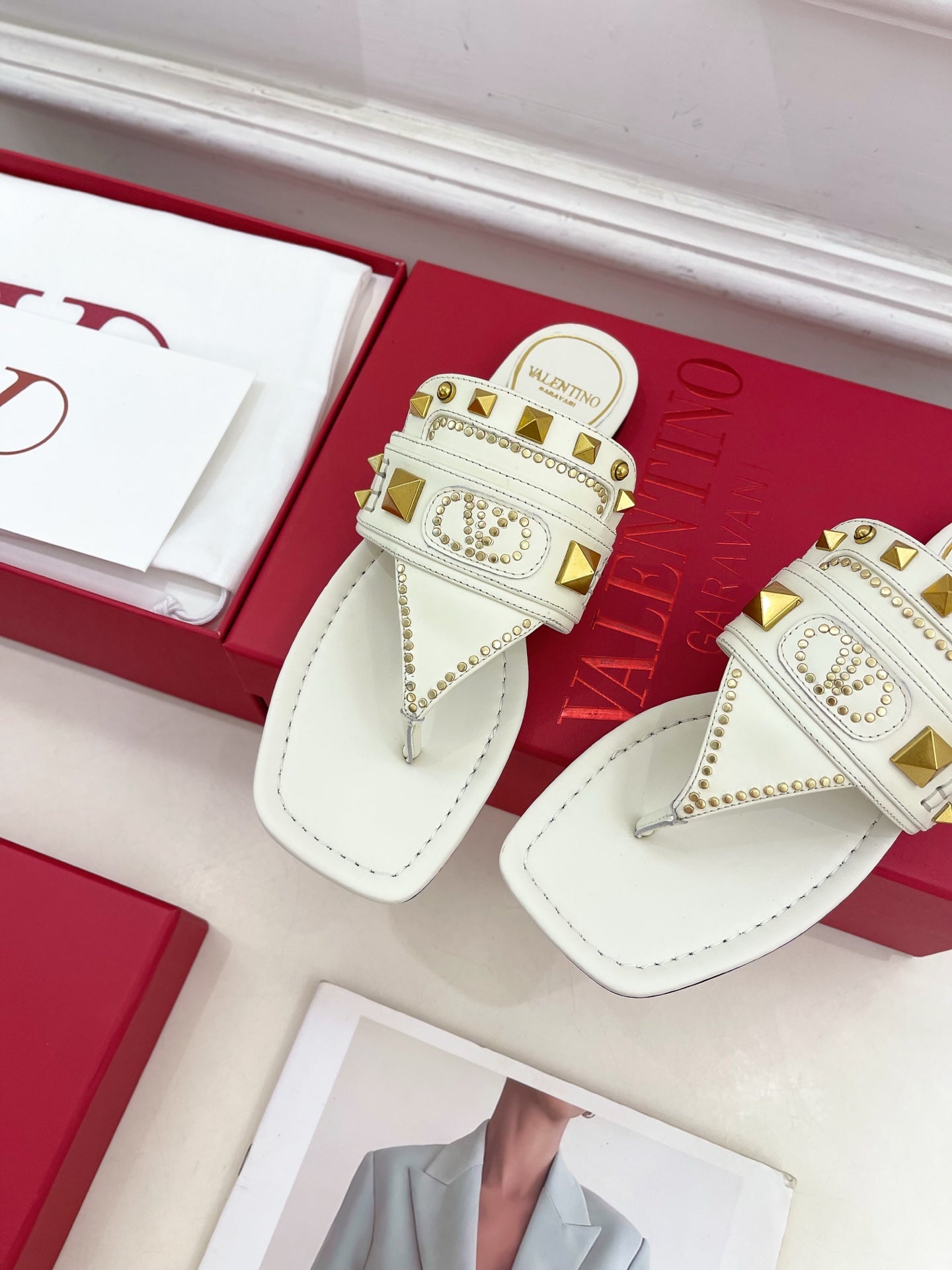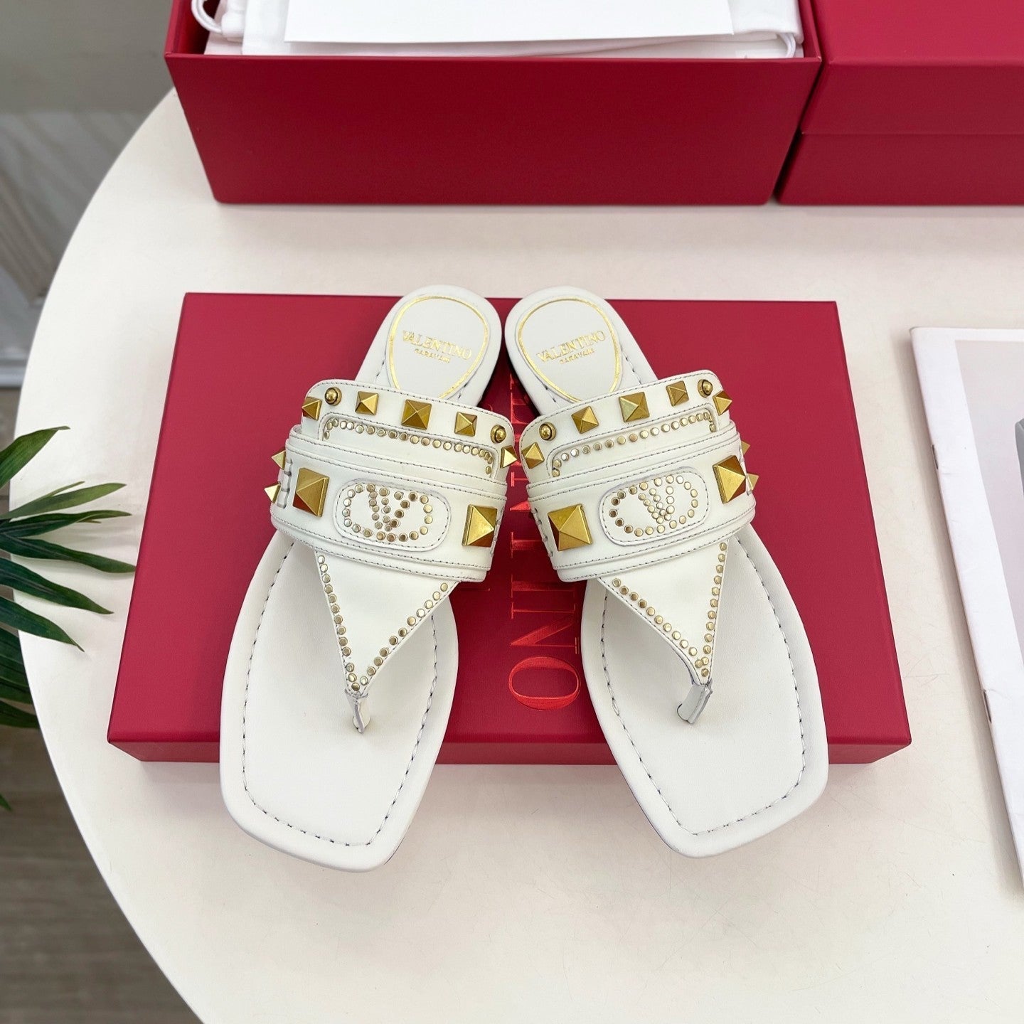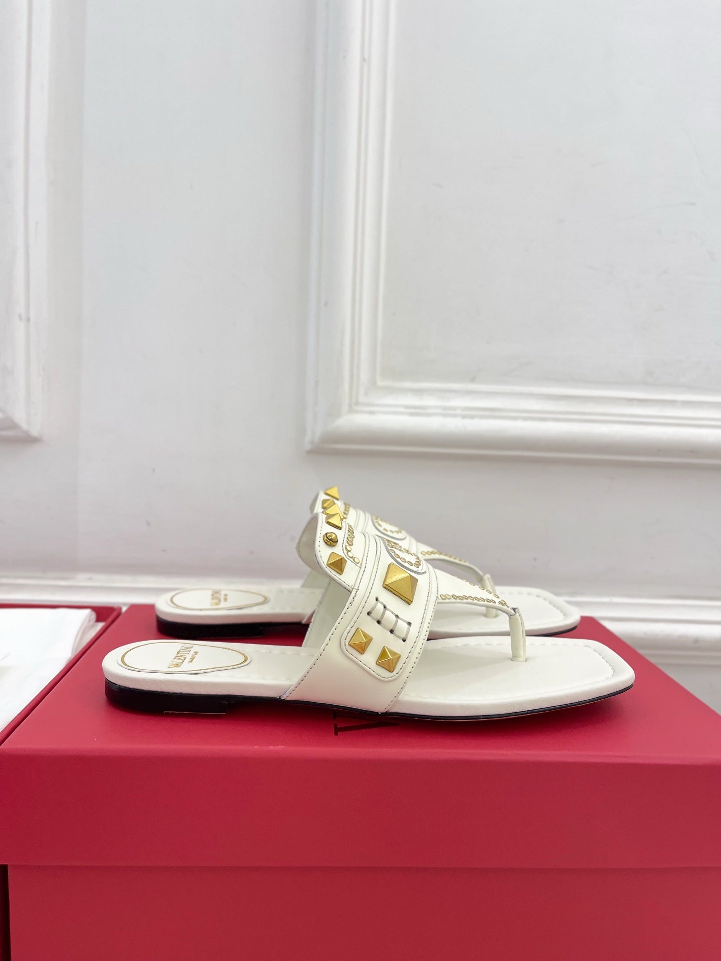 Plaster Caster Buffalo Thong Sandal White Calfskin And Cowhide 307475