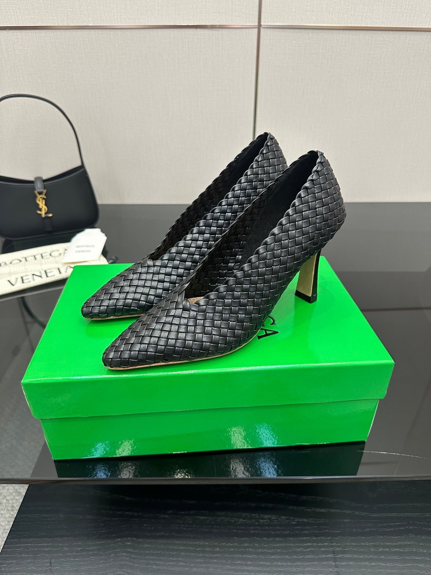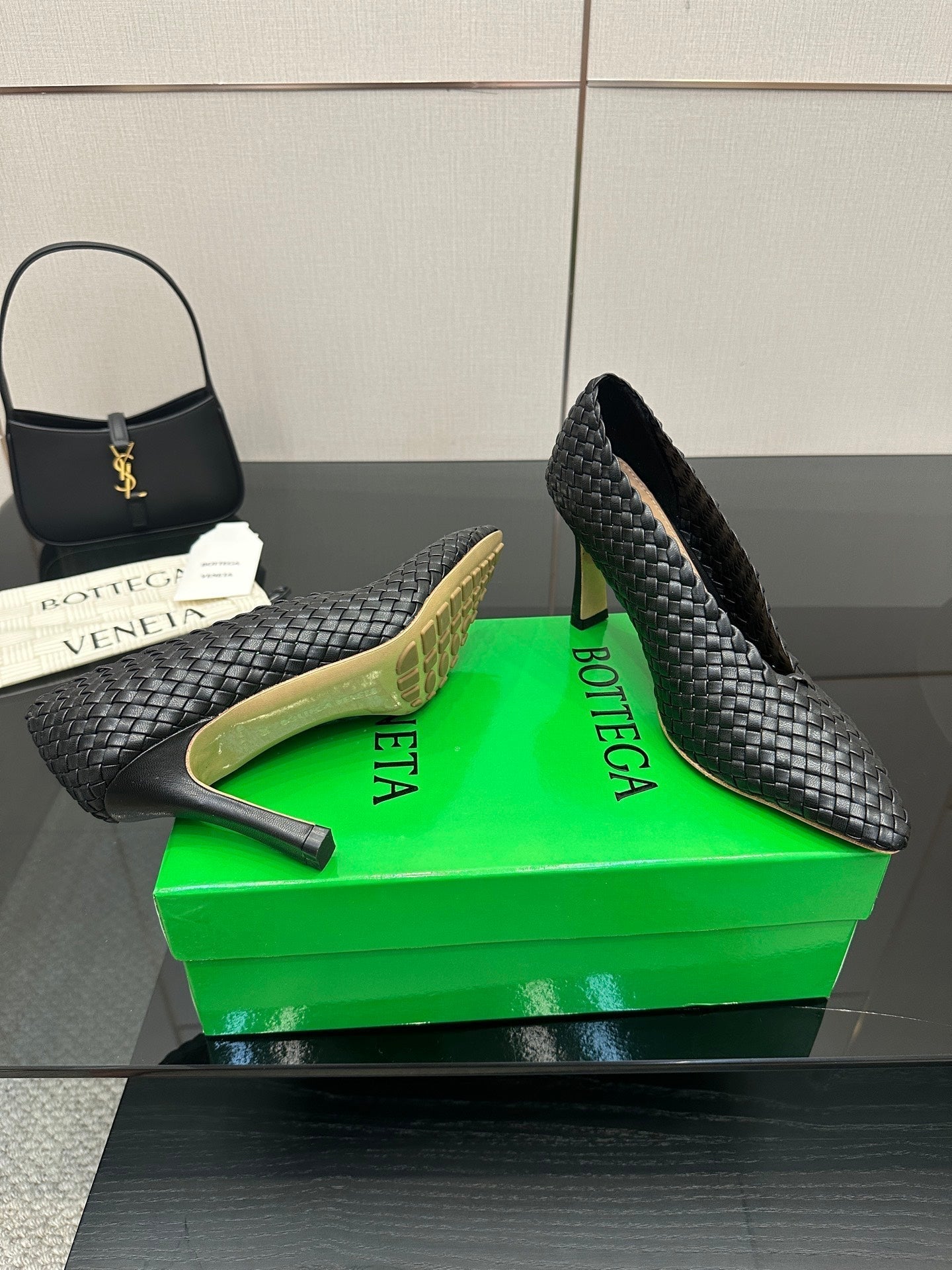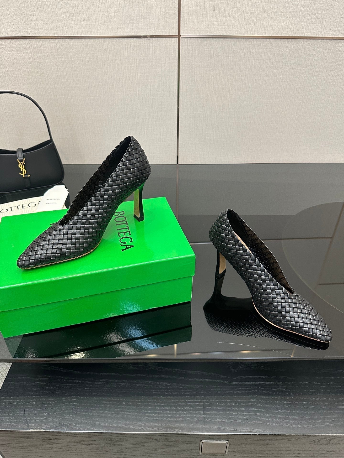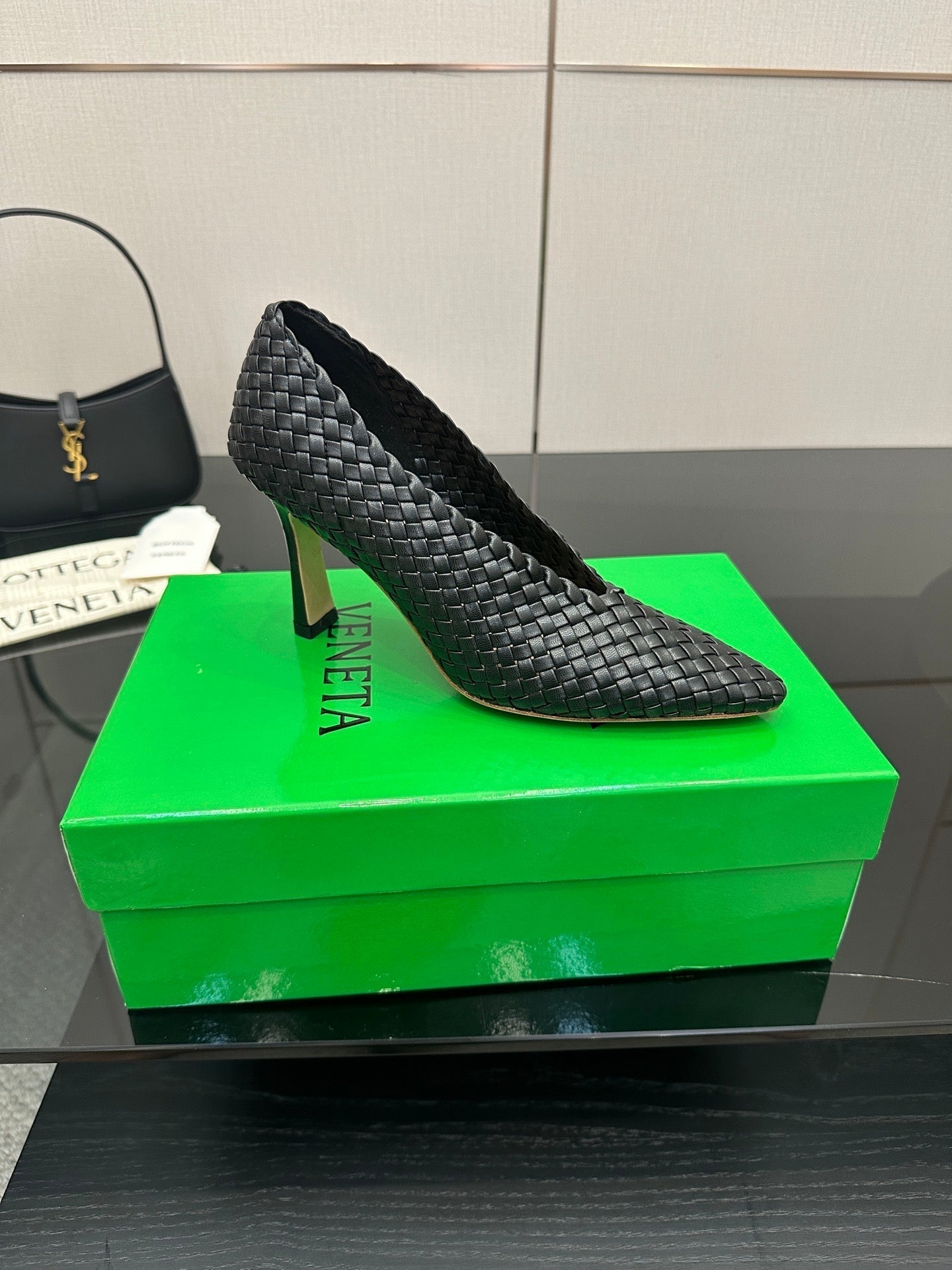 BV Sofia Pump 90mm Black Intreccio leather 427651