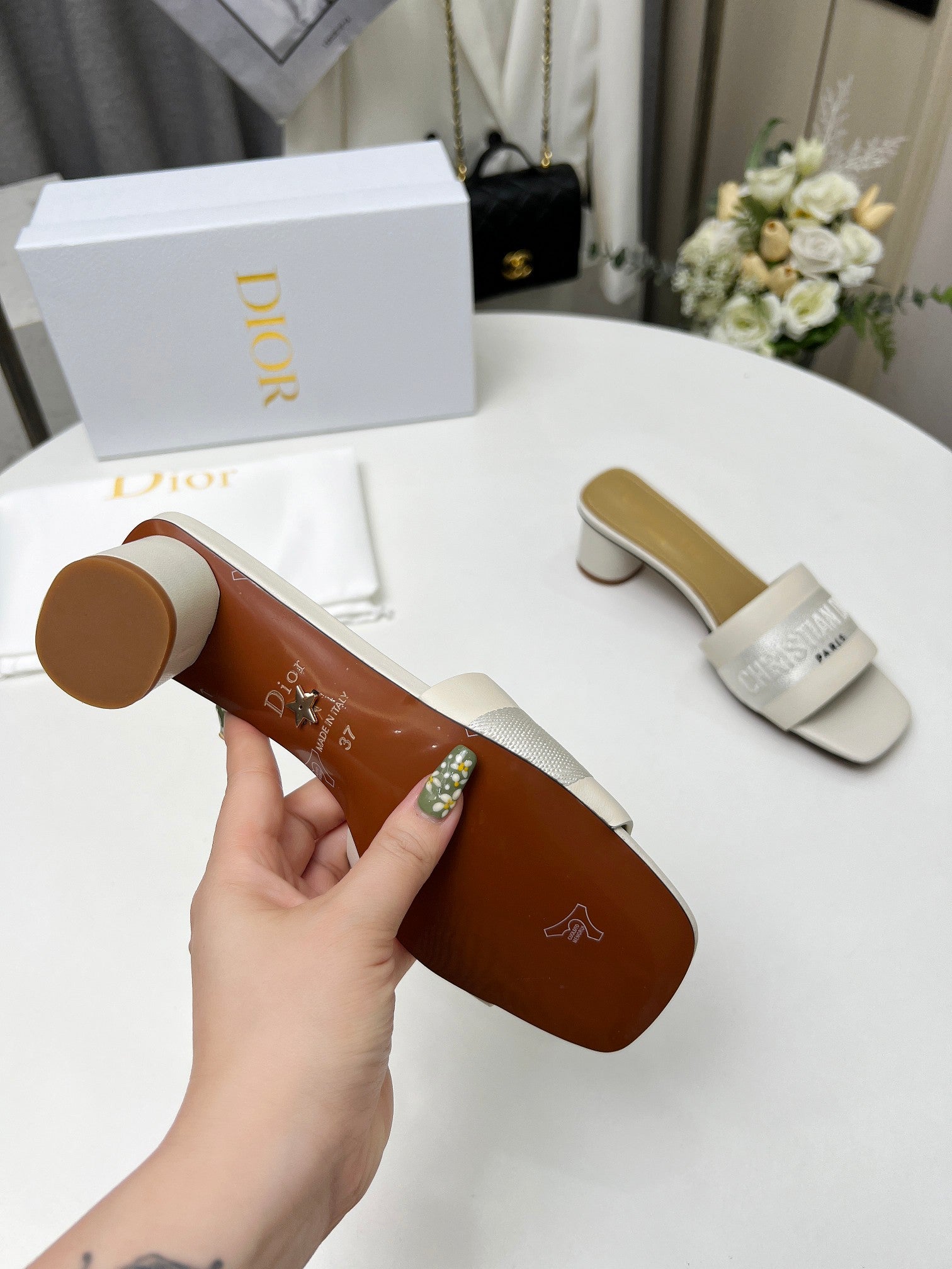 cd dway 45 cream canvas calfskin