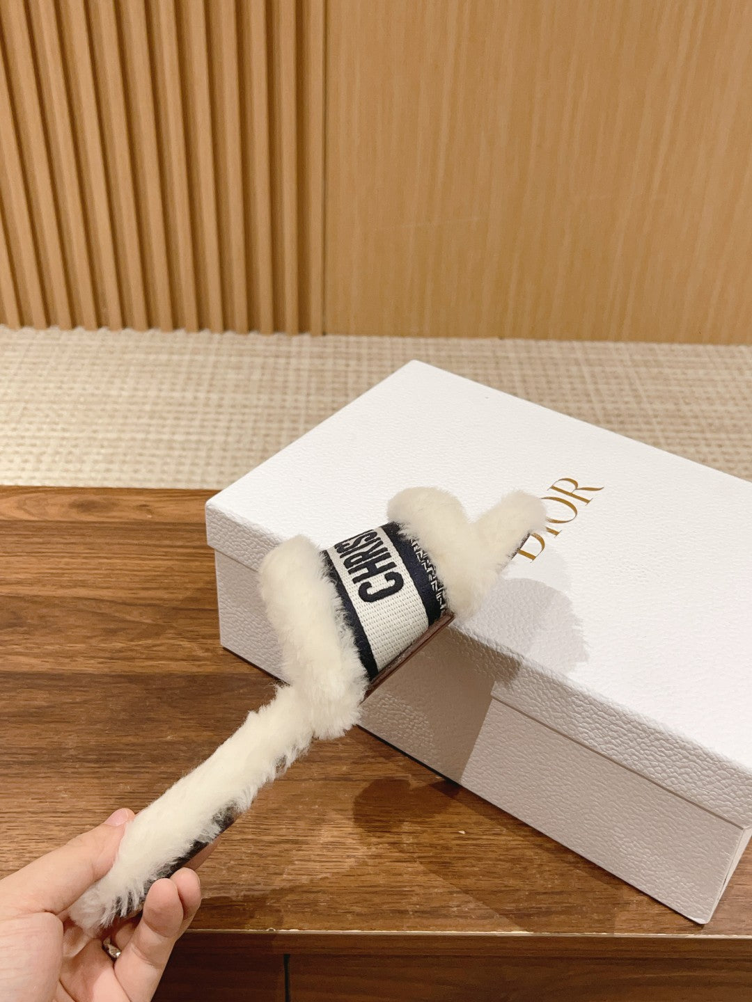 CD Dway Slide White Black Fleece Lining And Canvas Fabric