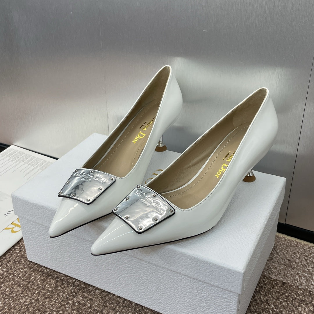 CD Pumps 65mm Glossy White Cowhide