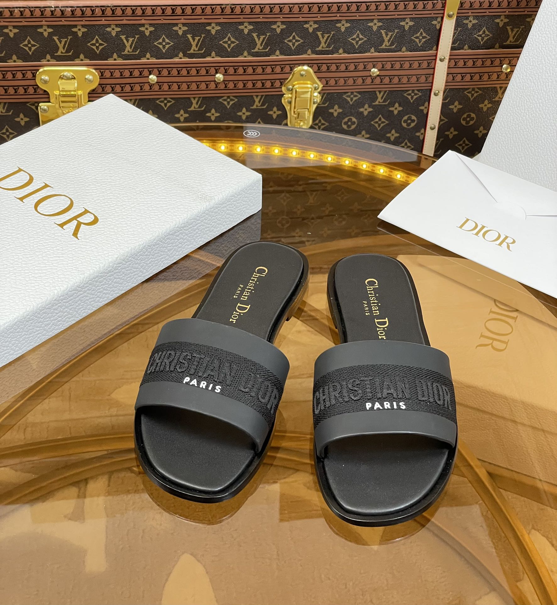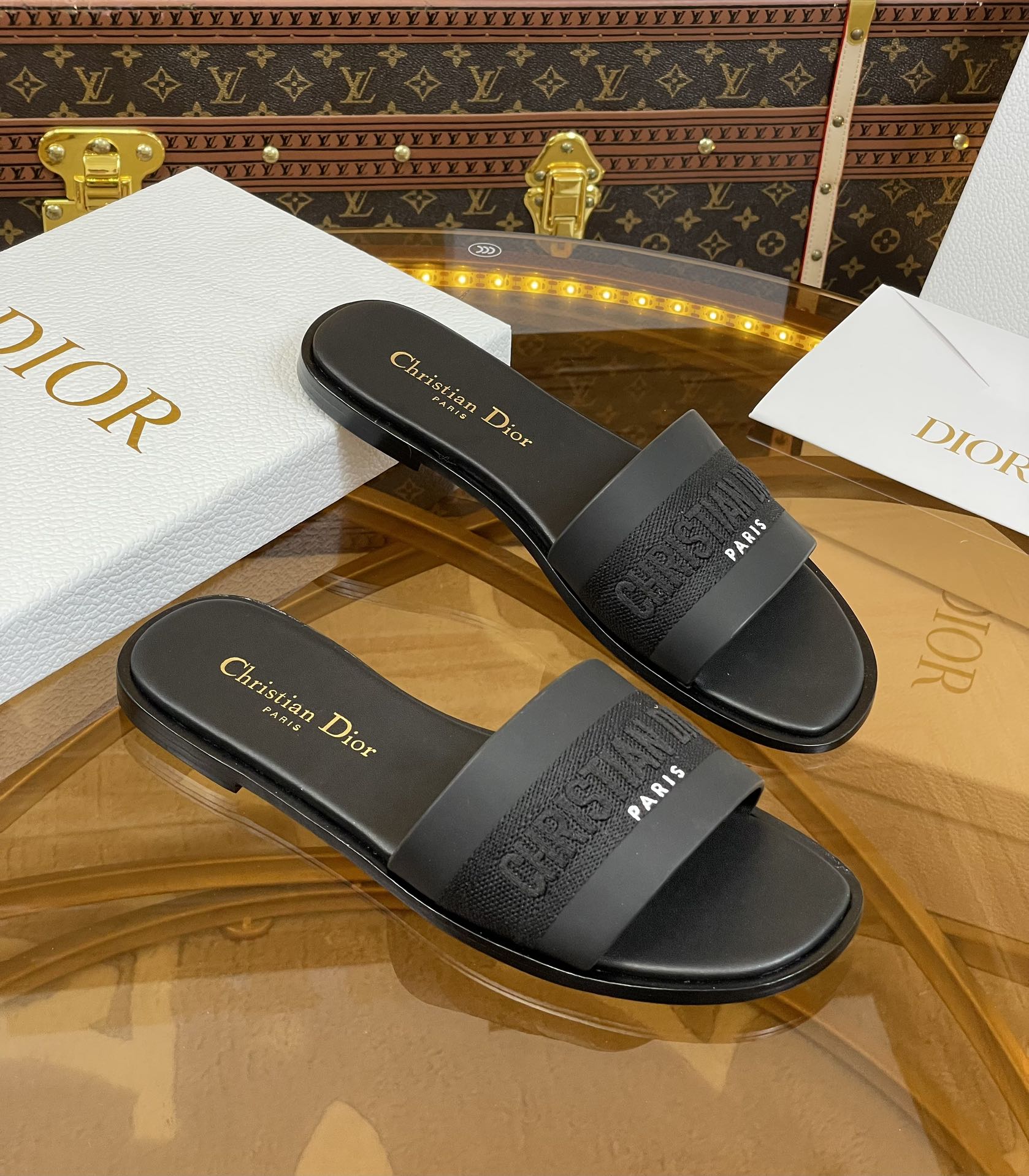 cd slide black calfskin embroidered cotton