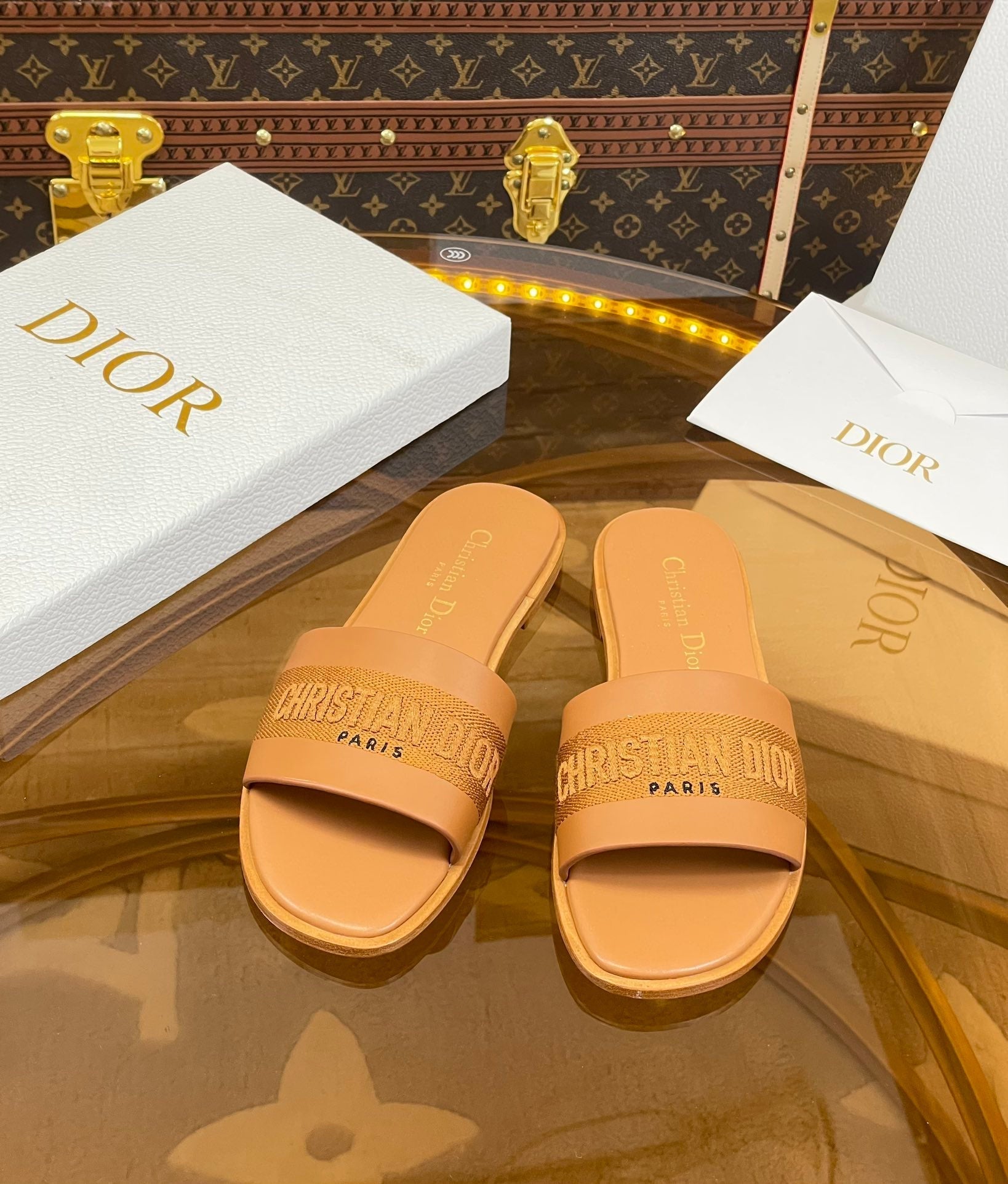 cd slide camel calfskin embroidered cotton