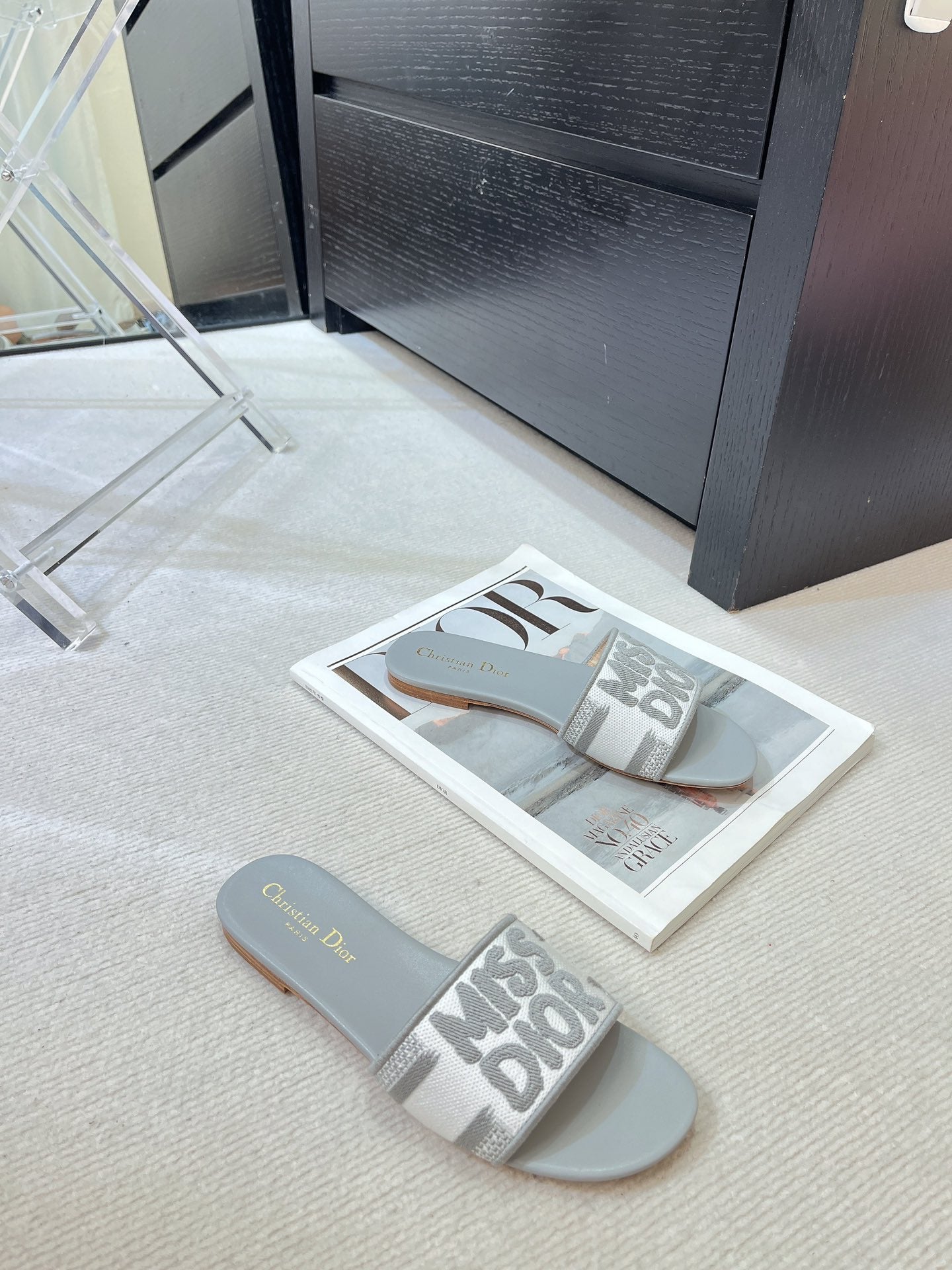 dway slide embroidered grey cotton