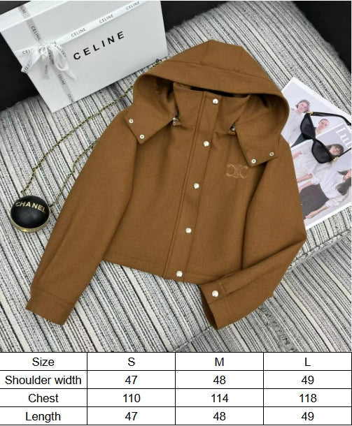 Triomphe Embroidered Hooded Jacket In Tan Cotton
