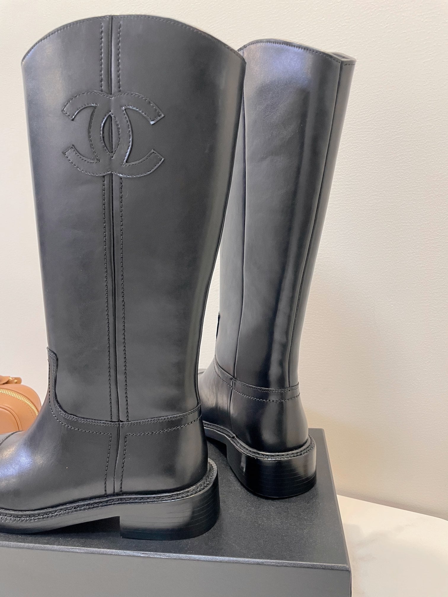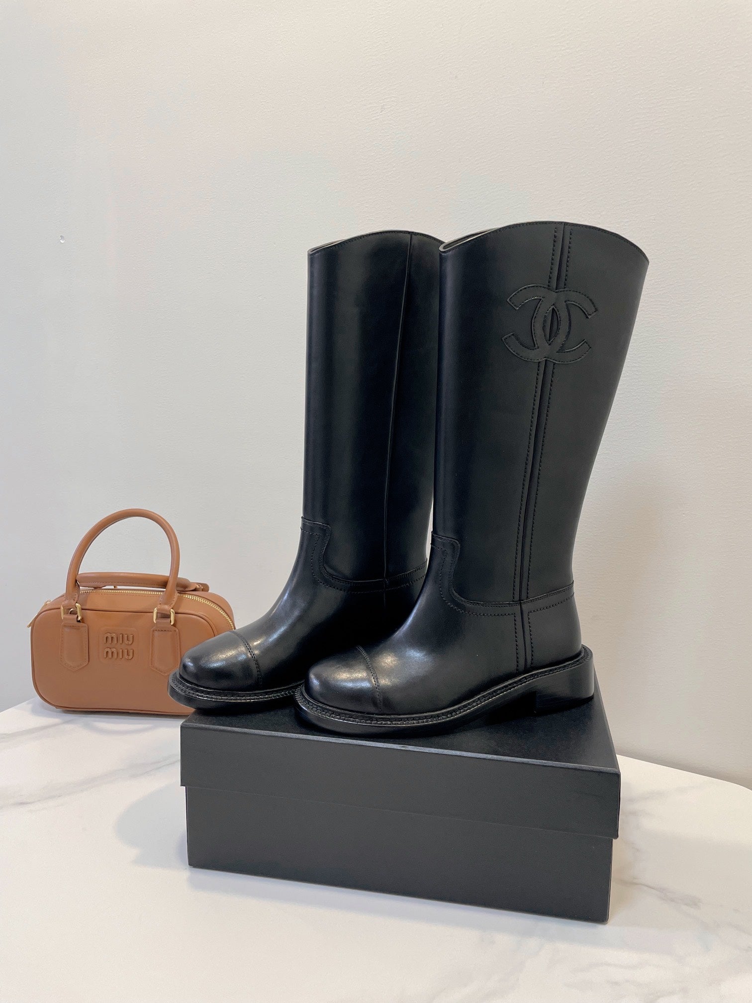 CC High Boots Black Logo Print Cowhide 944734