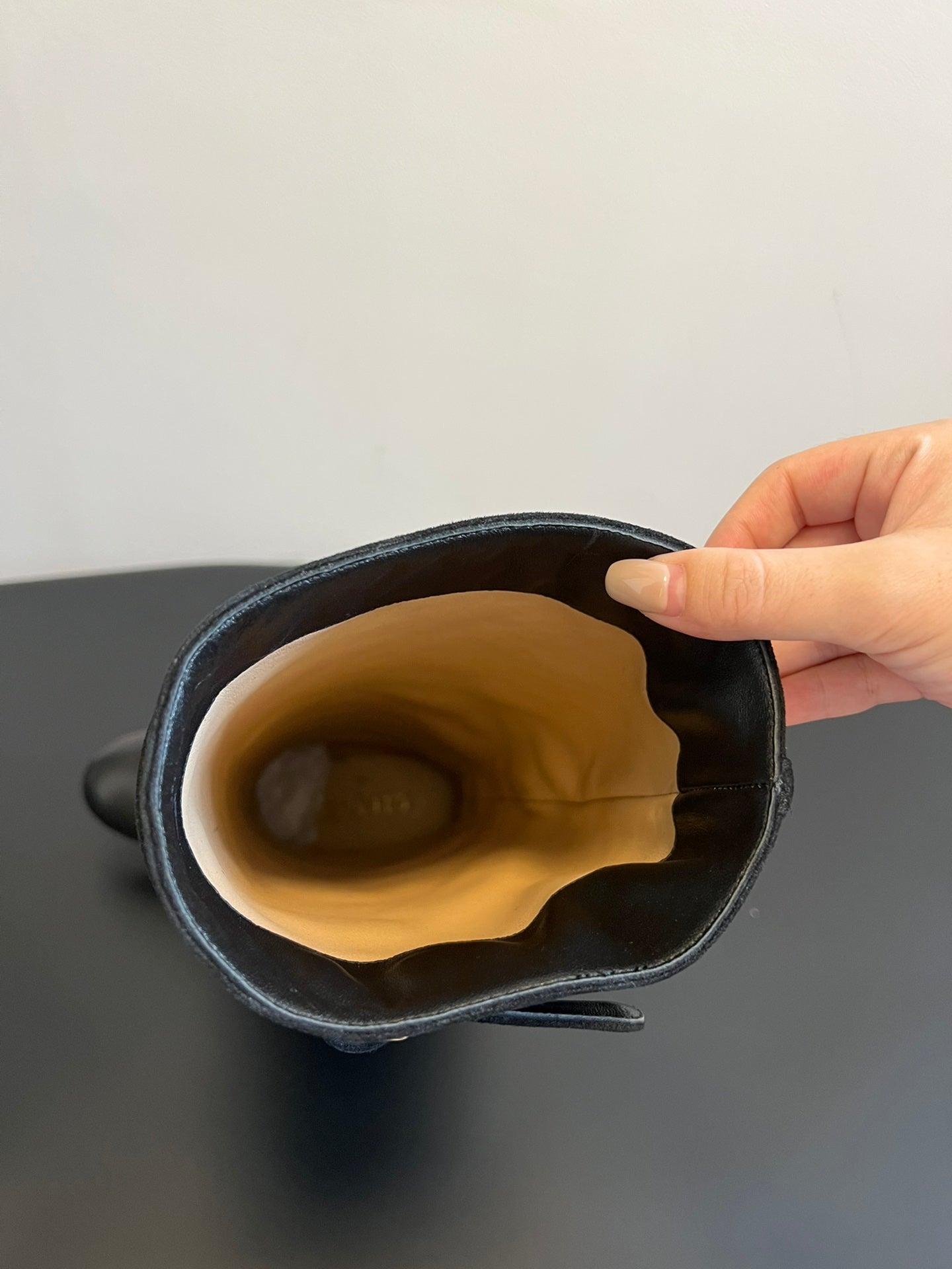 CC Hight Boots Black With Chain Suede And Cowhide 944967