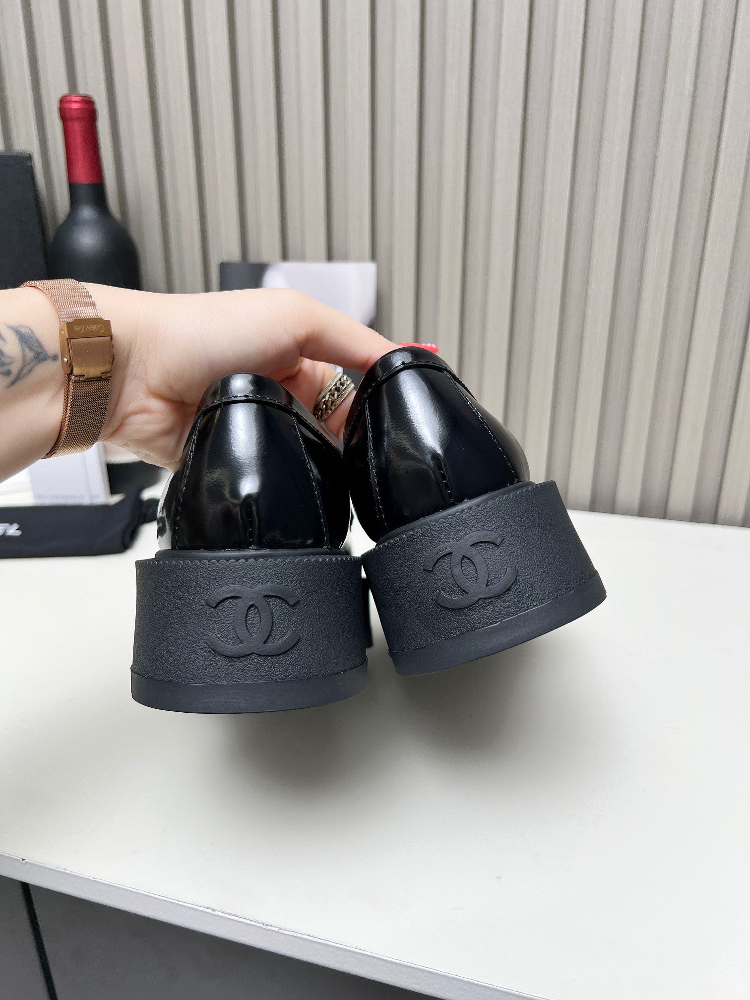 CC Moccasins Glossy Black Lambskin 944571