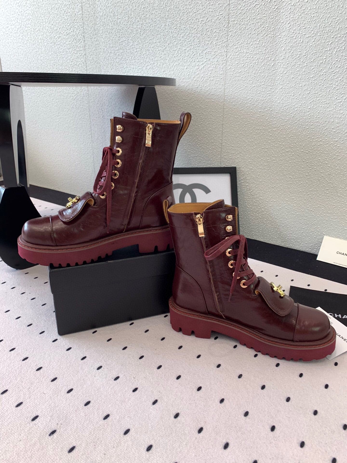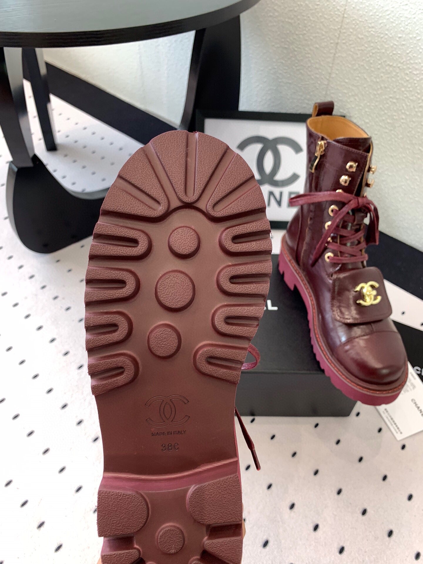 CC Split Toe Ankle Boot 40mm Burgundy Sheepskin Rubber GHW 432516