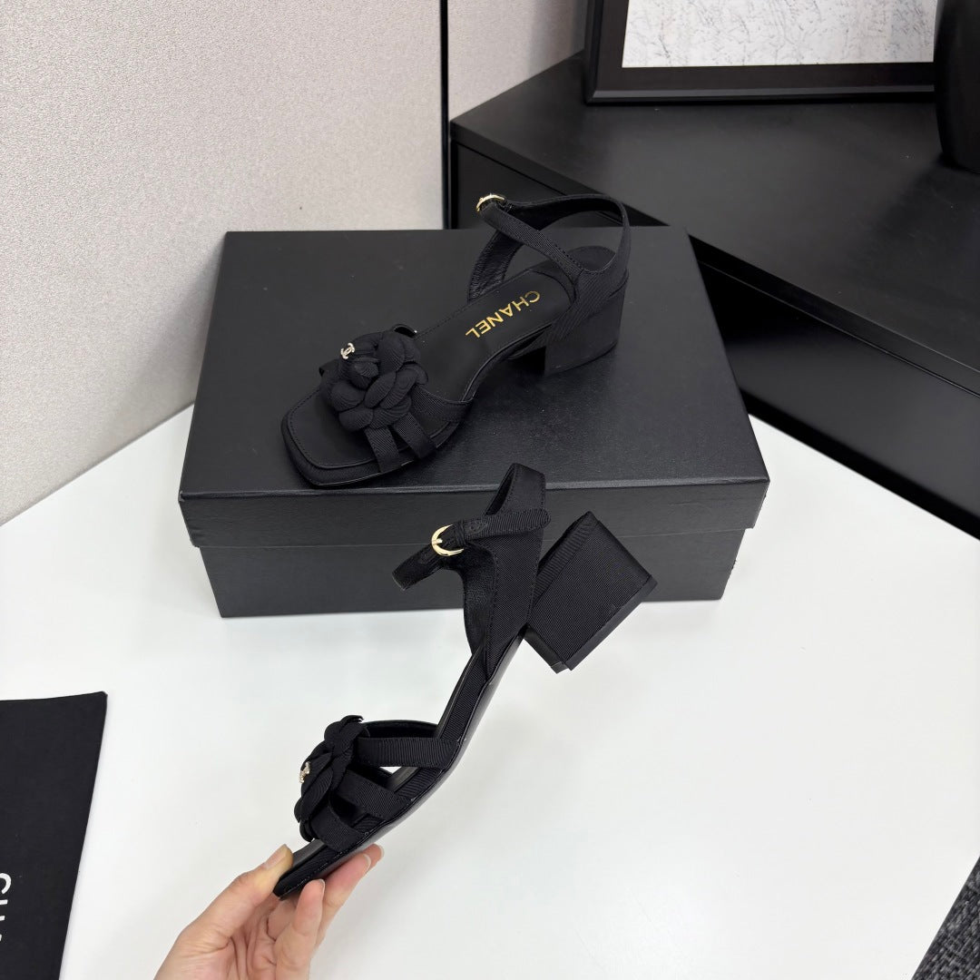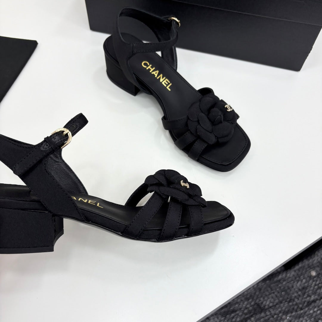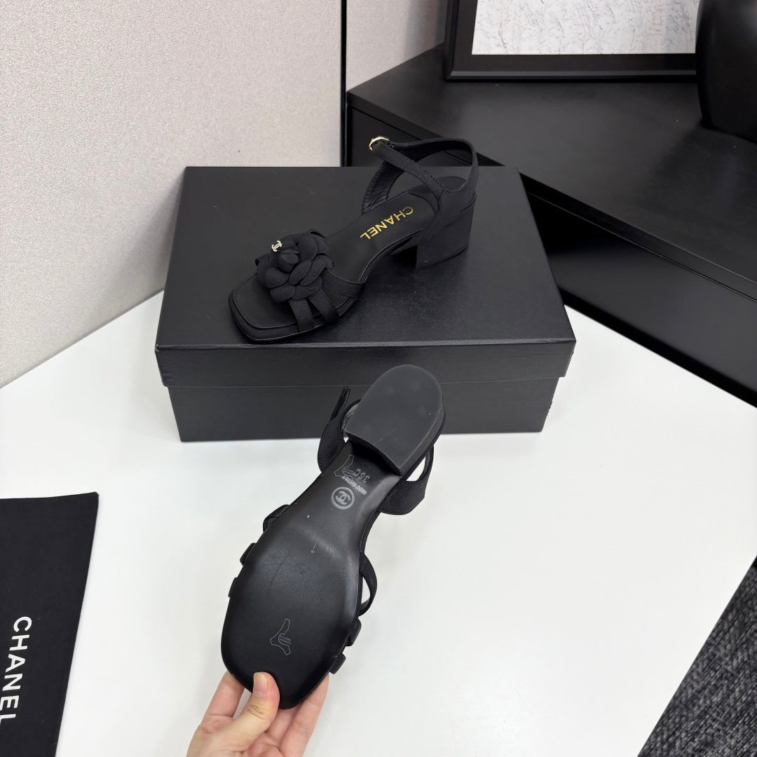 CC 25 Camellia Open Heel Sandals 50mm Black Sheepskin And Fabric 368811