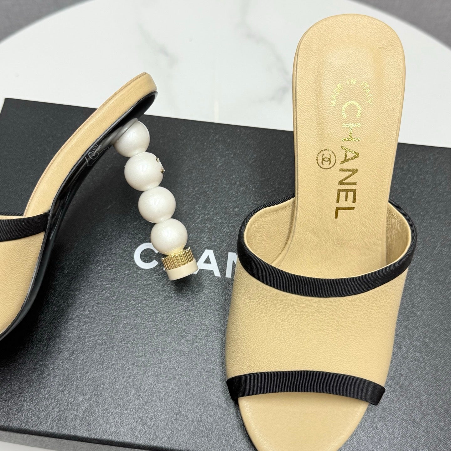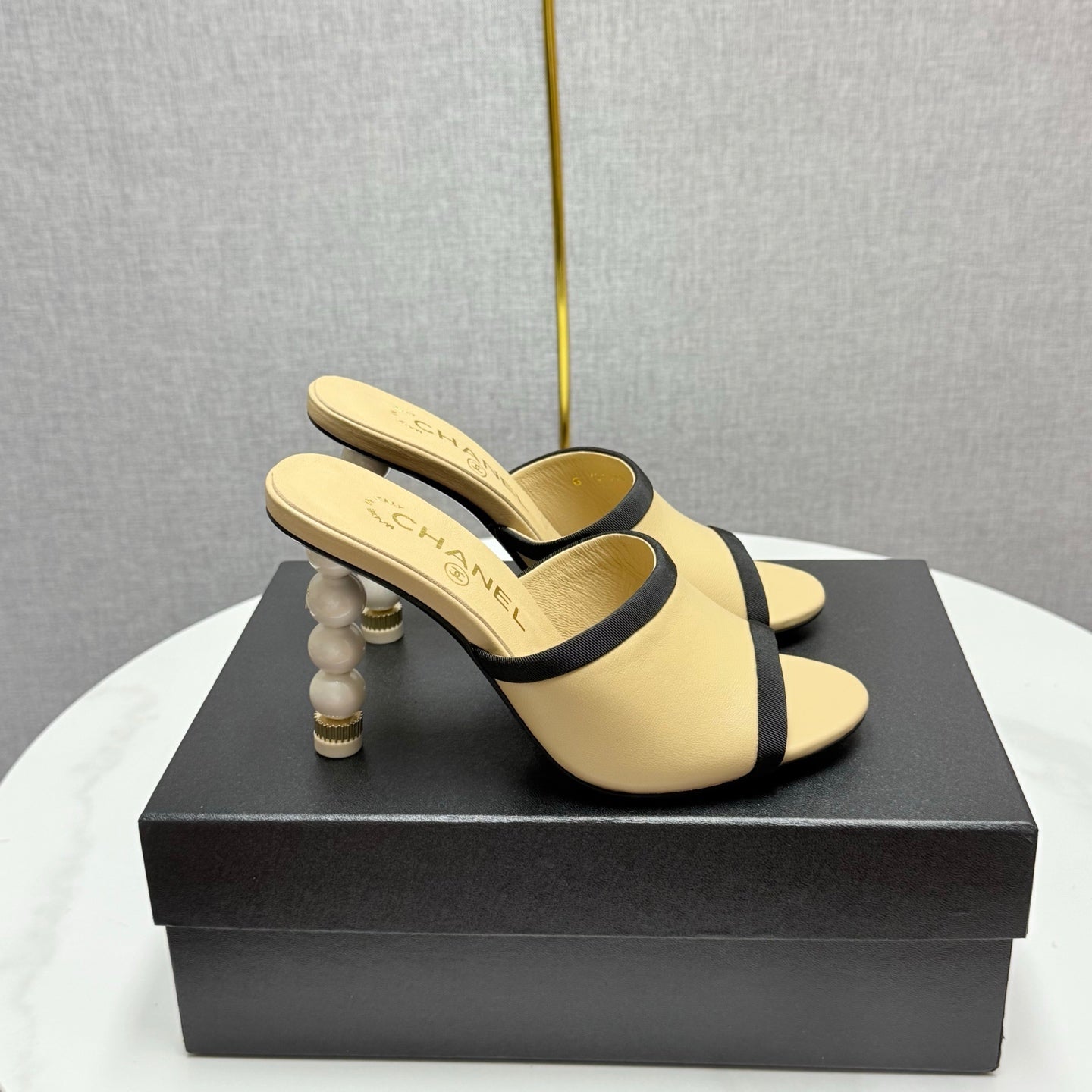 CC 25 High Heel Slippers 85mn Beige Black Sheepskin 368791