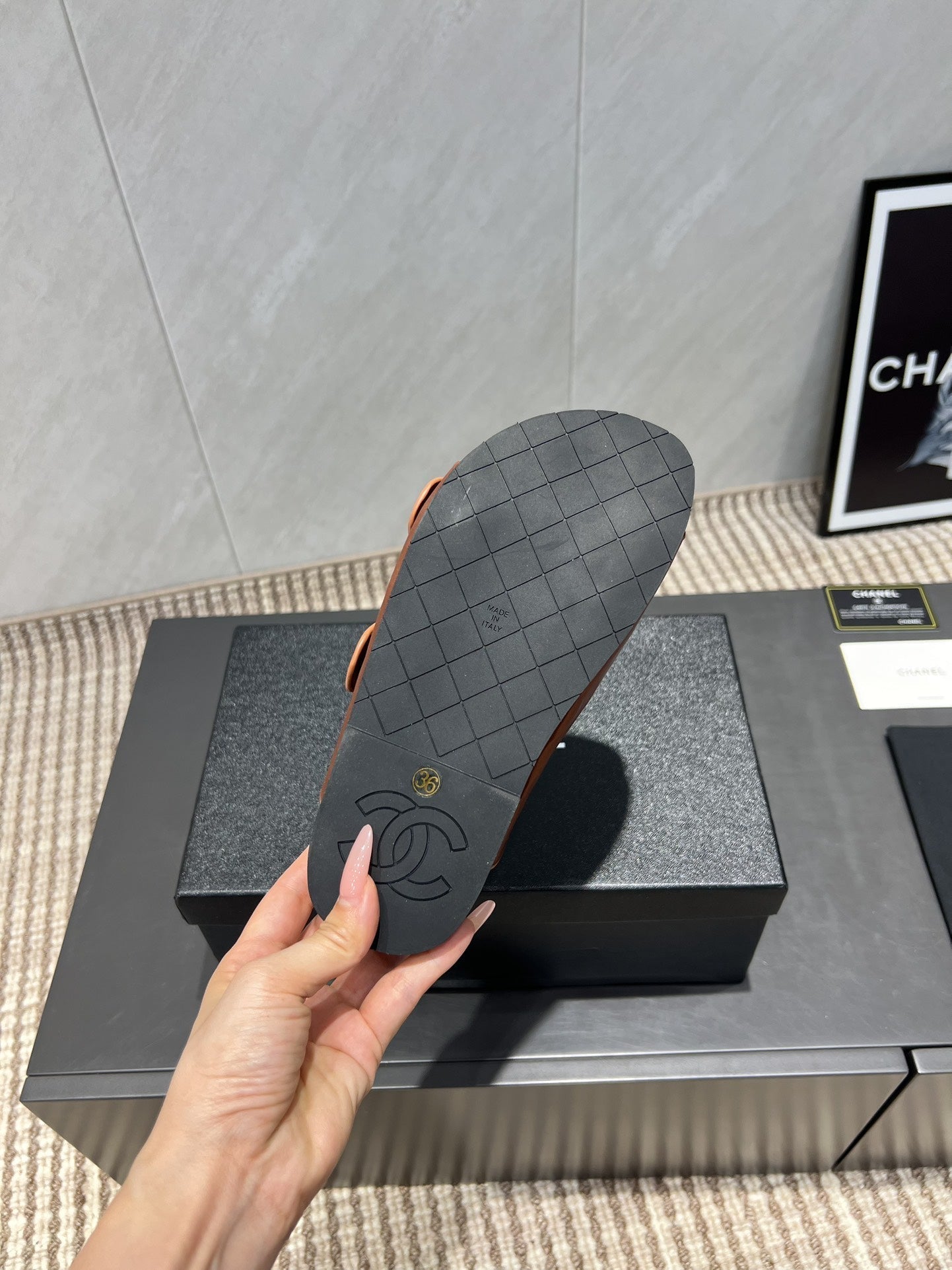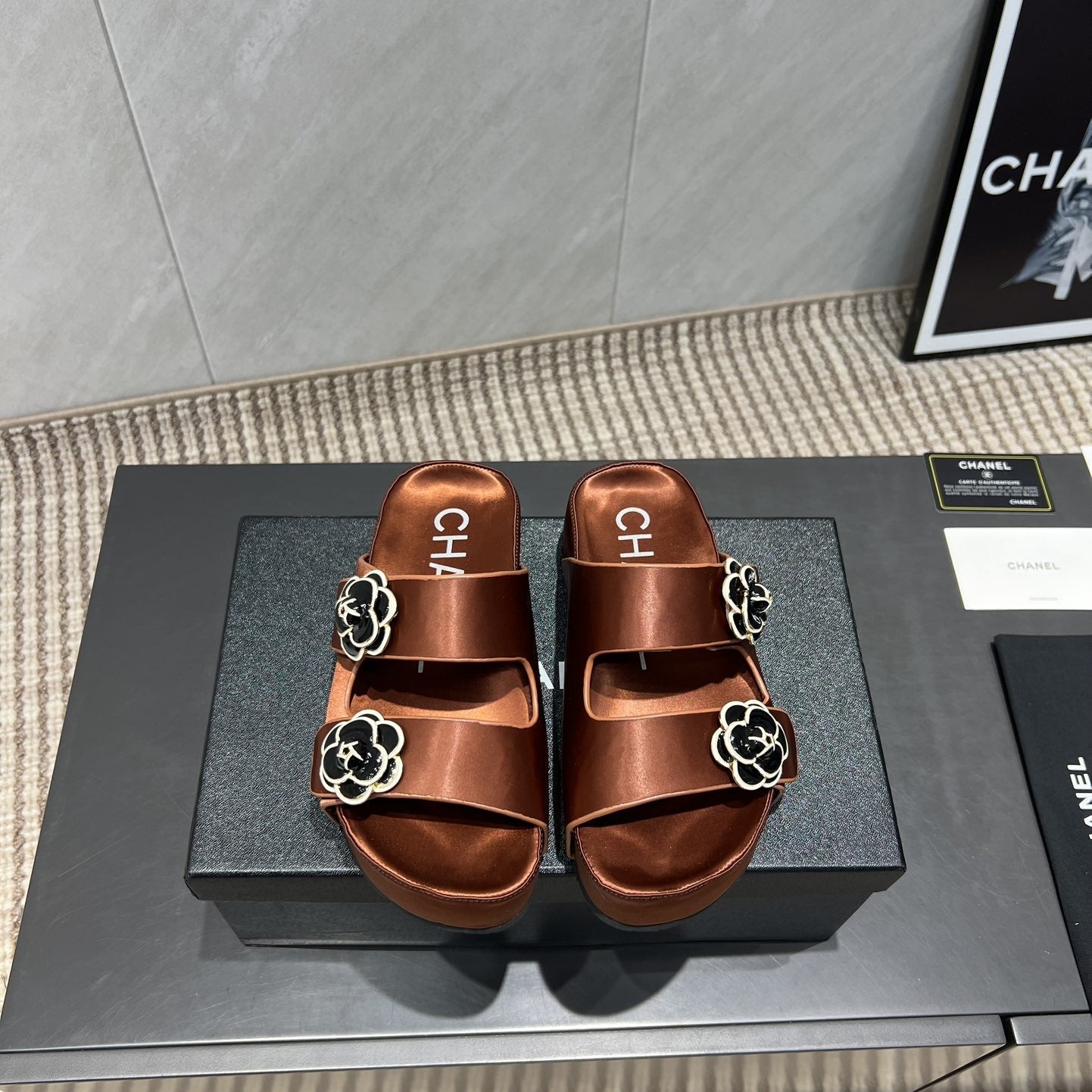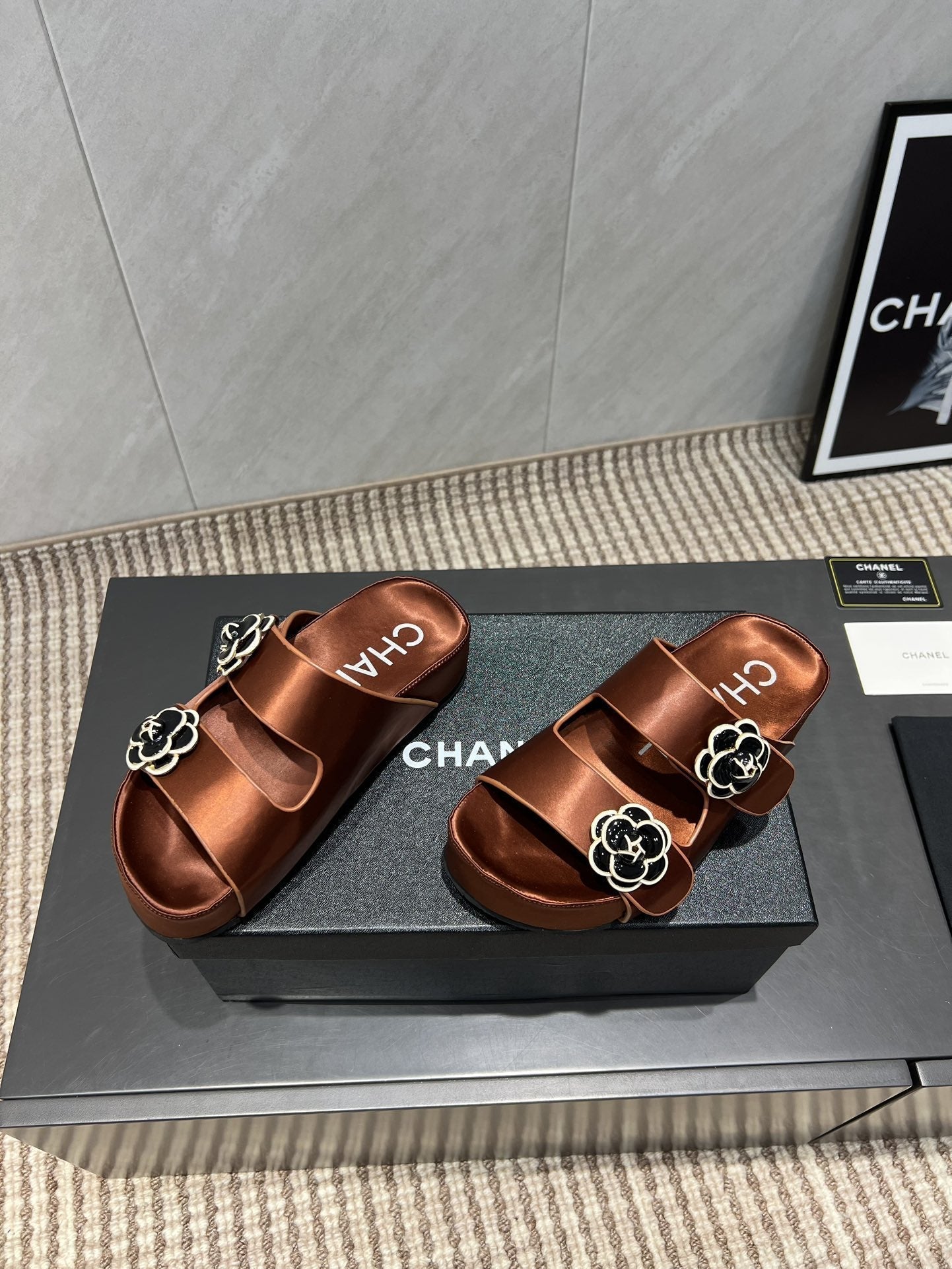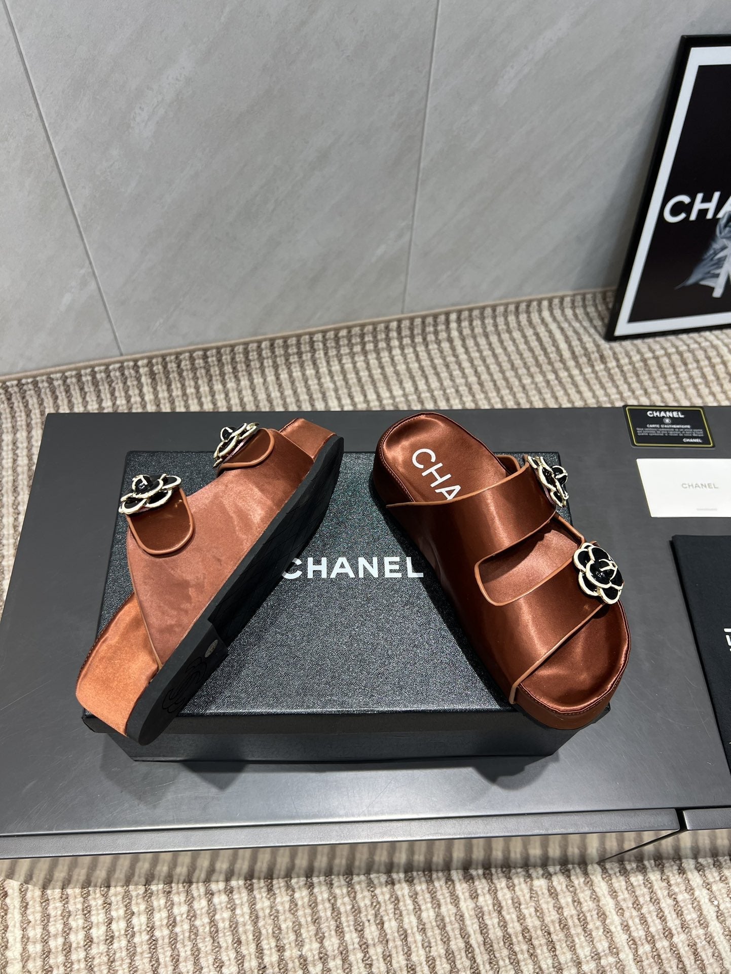 CC 25SS Flower Buckle Platform Beach Slides in Bronze High-Mercerized Sardine